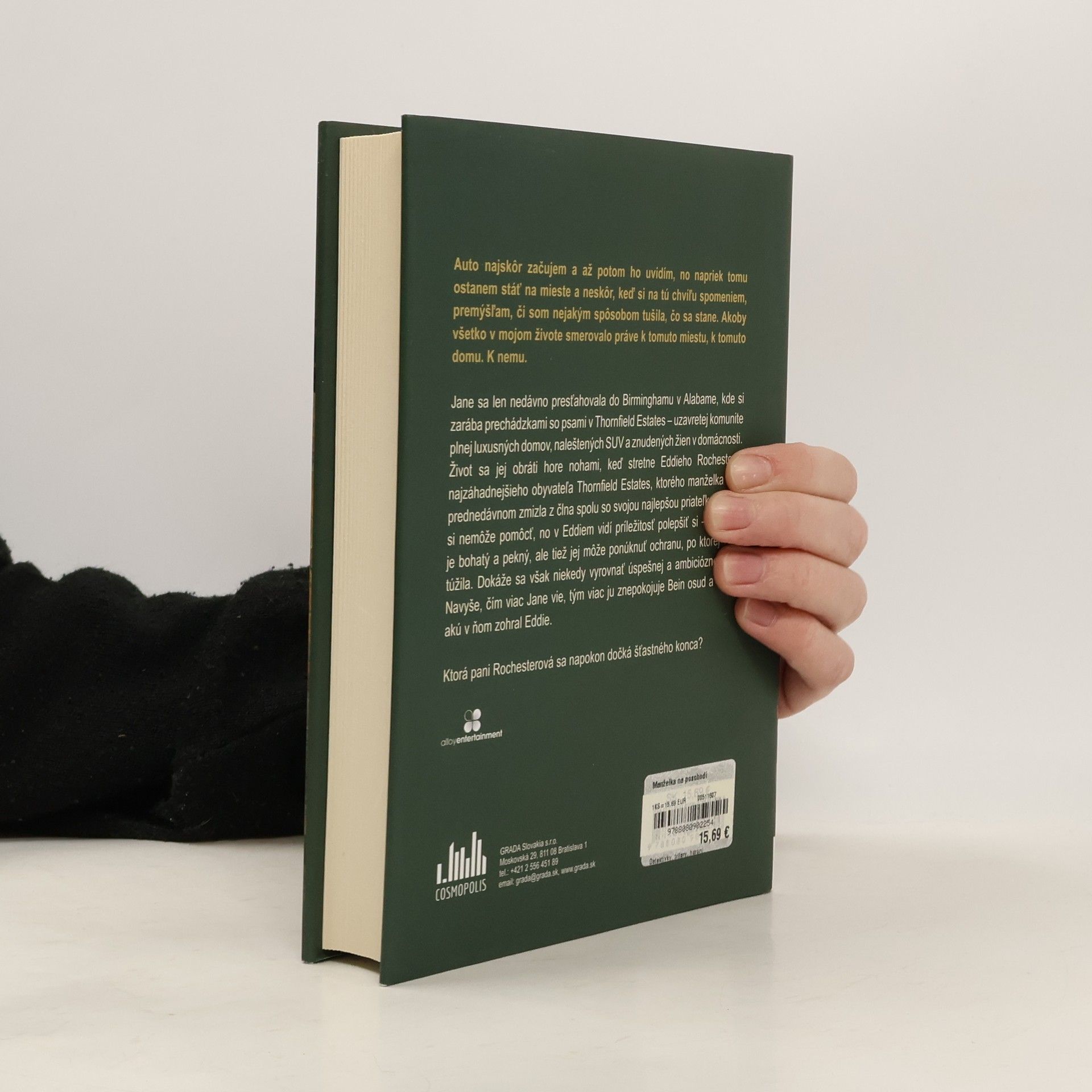 Auto najskôr začujem a až potom ho uvidím, no napriek tomu ostanem stáť na mieste a neskôr, keď si na tú chvíľu spomeniem, premýšľam, či som nejakým spôsobom tušila, čo sa stane. Akoby všetko v mojom živote smerovalo práve k tomuto miestu, k tomuto domu. K nemu. Jane sa len nedávno presťahovala do Birminghamu v Alabame, kde si zarába prechádzkami so psami v Thornfield Estates – uzavretej komunite plnej luxusných domov, naleštených SUV a znudených žien v domácnosti. Život sa jej obráti hore nohami, keď stretne Eddieho Rochestera, najzáhadnejšieho obyvateľa Thornfield Estates, ktorého manželka Bea prednedávnom zmizla z člna spolu so svojou najlepšou priateľkou. Jane si nemôže pomôcť, no v Eddiem vidí príležitosť polepšiť si – nielenže je bohatý a pekný, ale tiež jej môže ponúknuť ochranu, po ktorej vždy túžila. Dokáže sa však niekedy vyrovnať úspešnej a ambicióznej Bei? Navyše, čím viac Jane vie, tým viac ju znepokojuje Bein osud a úloha, akú v ňom zohral Eddie. Ktorá pani Rochesterová sa napokon dočká šťastného konca?