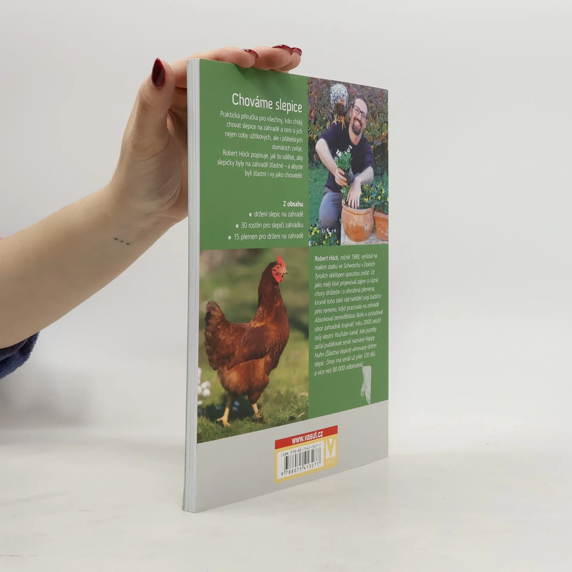 Praktická příručka pro všechny, kdo chtějí chovat slepice na zahradě a cení si jich nejen coby užitkových, ale i přátelských domácích zvířat. Robert Höck popisuje, jak to udělat, aby slepičky byly na zahradě šťastné – a abyste byli šťastní i vy jako chovatelé.