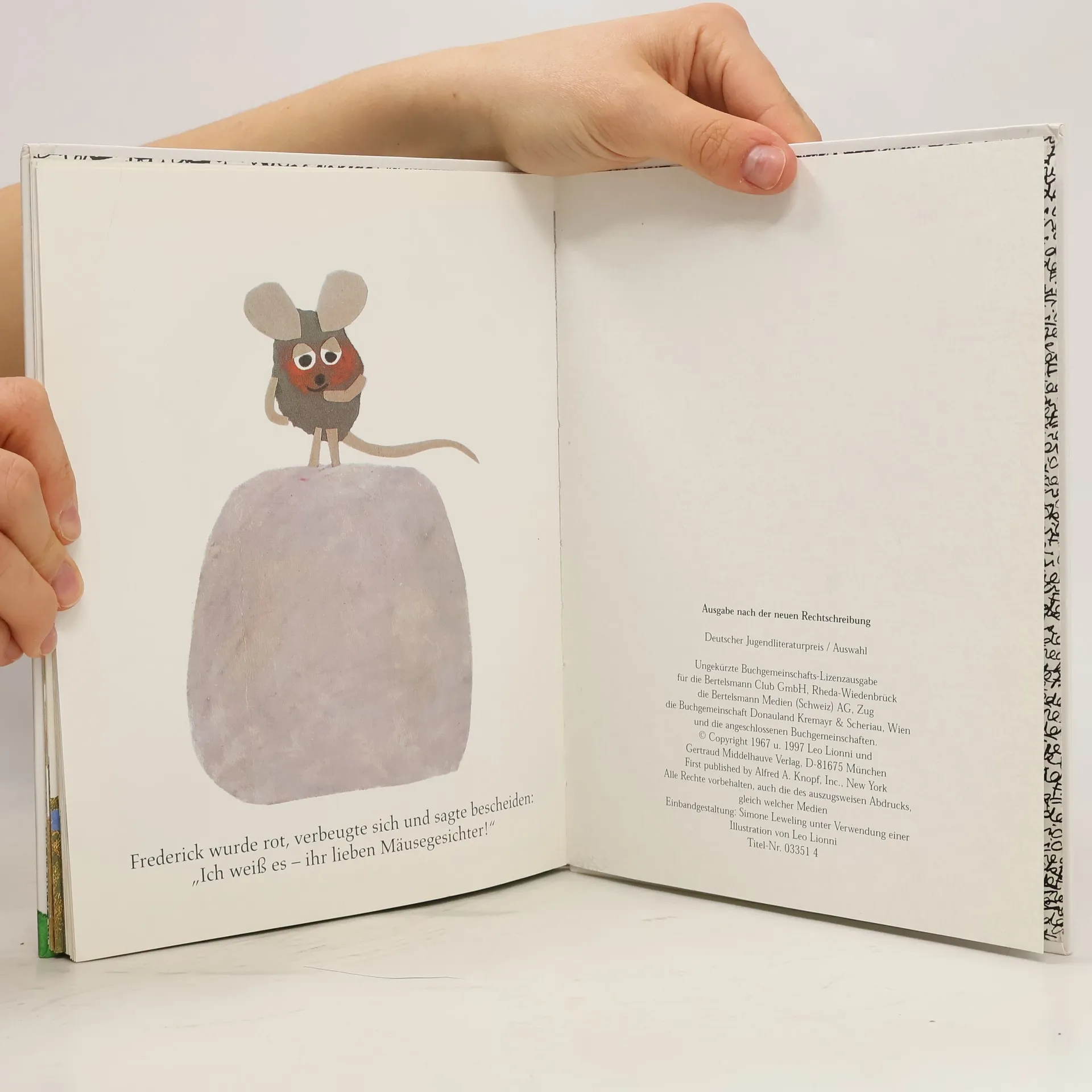 „Die Geschichte von der Maus, die nicht wie die anderen für den Winter Körner und Nüsse, sondern Sonnenstrahlen, Farben und Wörter sammelt, die Träume also und die Hoffnungen.“ Die Welt Der Winter naht. Alle Feldmäuse arbeiten Tag und Nacht, sammeln Körner und Nüsse, Weizen und Stroh. Alle bis auf Frederick. Er sammelt Sonnenstrahlen, Farben und Wörter, das sind seine Vorräte für die kalten, grauen und langen Wintertage. Schon als Kind liebte Leo Lionni die Natur, und das änderte sich im Laufe der Jahre auch nicht mehr. Seine Beobachtungen spiegeln sich in seinen Bilderbüchern wieder: „Das Staunen, das mich erfüllt, wenn ich im Gras liege und eine Riesenwelt im Kleinen beobachte, in der Grashalme Mammutbäume sind und ein Käfer ein angreifendes Nashorn, ist noch dasselbe wie damals, als ich ein kleiner Junge war.“ Leo Lionni Der moderne Bilderbuch-Klassiker „Frederick“ begeistert eine Kindergeneration nach der anderen! „Von all dem, was ich in meinem Leben getan habe, hat mich wenig so sehr und so tief befriedigt wie meine Kinderbücher.“ Leo Lionni