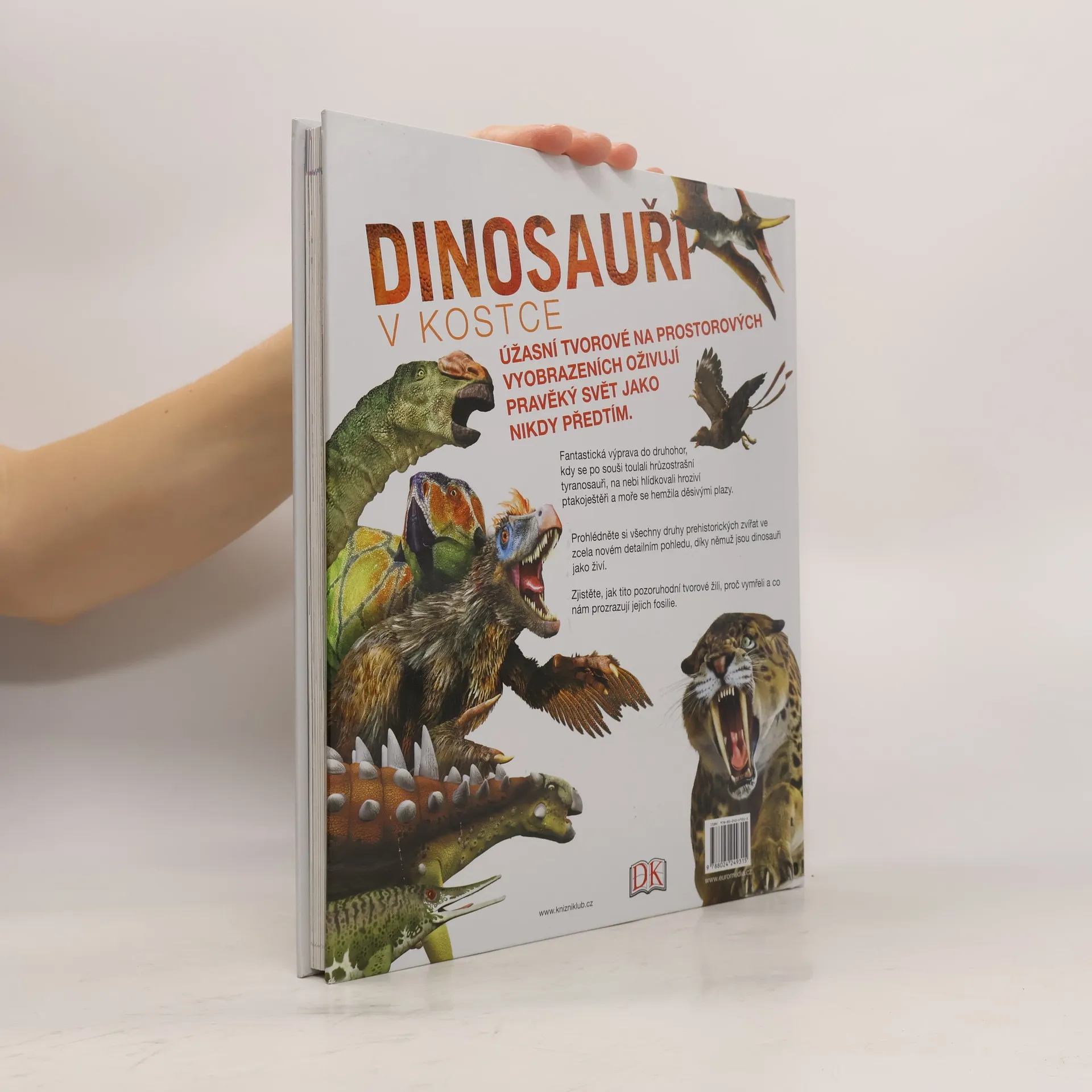 Pozoruhodná encyklopedie dinosaurů zachycuje tato ohromující prehistorická zvířata na prostorových vyobrazeních, doprovázených přehledným informativním textem. V knize Dinosauři v kostce ožívají tyranosauři, ptakoještěři, velcí mořští plazi i celý prehistorický svět tak jako nikdy předtím.