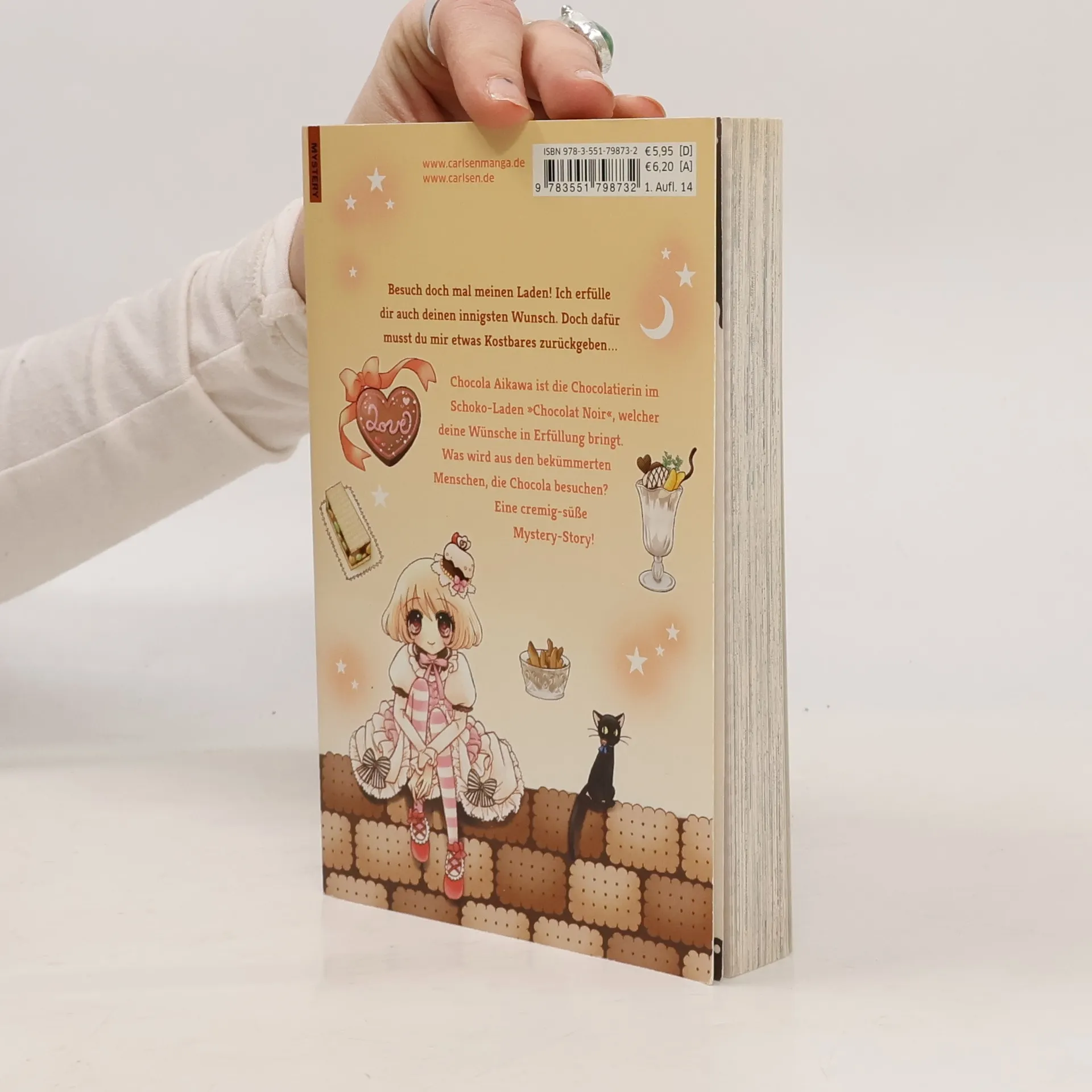 Schokosüßer, cremig-zuckriger Gruselspaß - Chocola Aikawa's magische Konditorei hat geöffnet! Hast du einen Wunsch, der dir unmöglich erscheint und auf natürlichem Wege niemals in Erfüllung gehen kann? Aber es gibt jemand, der dir diese Wünsche und noch viel mehr erfüllen kann: Die Hexe und Chocolatierin, Chocola Aikawa betreibt eine Konditorei mit magischer Schokolade, welche jede Sehnsucht wahr werden lassen kann. Doch für Naschen zahlt man immer einen Preis - für jeden Wunsch, der Wirklichkeit wird, verliert man sein Liebstes… Was wird aus den bekümmerten Menschen, die Chocola besuchen? Ursprünglich als Einzelband geplant, hat sich die Serie inzwischen zum Topseller des japanischen Verlages Shogakukan gemausert! Band 3 des zartbitteren Mystery-Manga für alle Schokoladen- und Fantasyfans! Empfohlen für Leser*innen ab 12 Jahren. Weitere Informationen: - Ein süßer Genuss auch für Manga-Neulinge - Die Serie gilt als noch nicht abgeschlossen