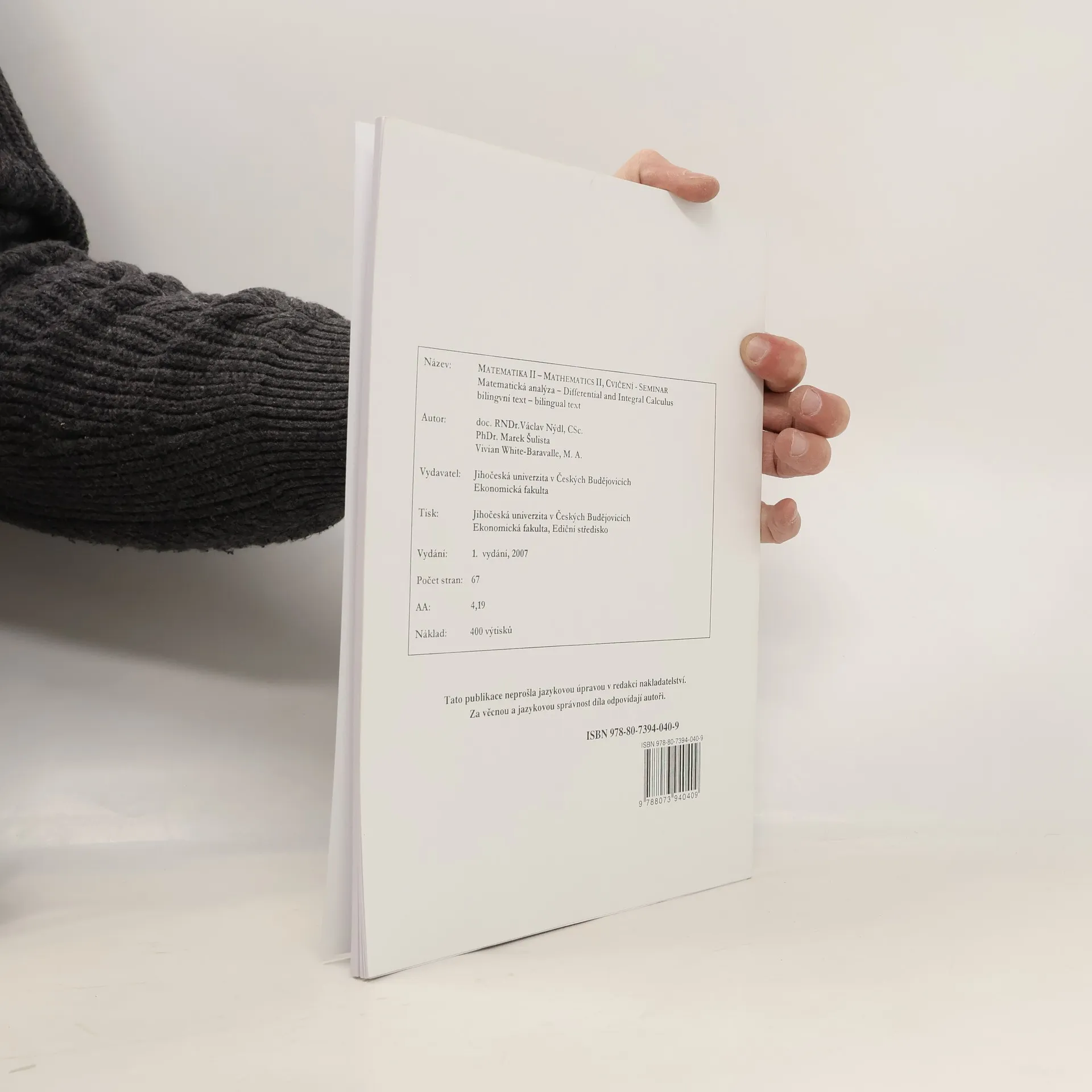 Matematika II : matematická analýza : cvičení : bilingvní text = Mathematics II : differential and integral calculus : seminar : bilingual text, Václav Nýdl, Marek Šulista, Vivian White Baravalle