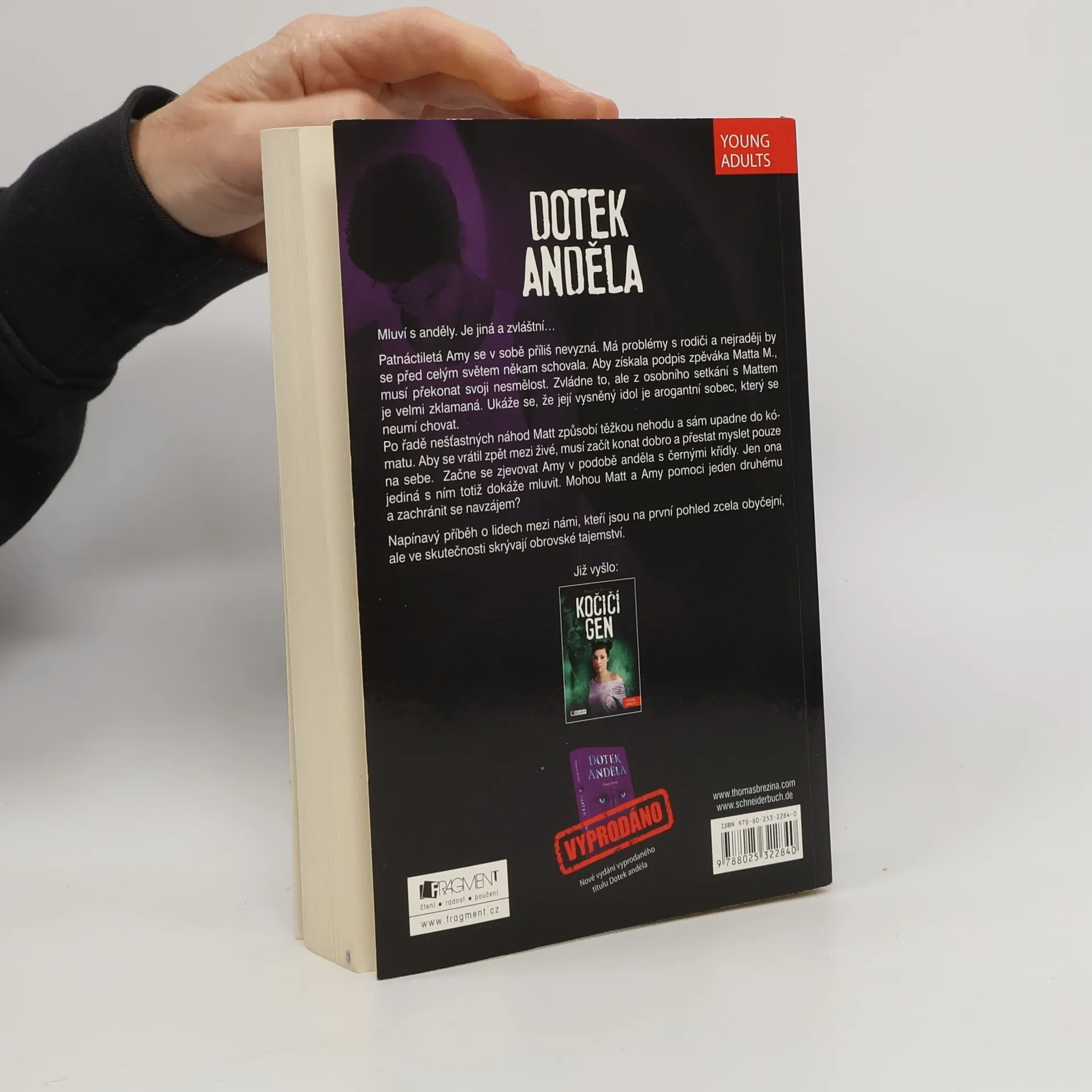 Mluví s anděly. Je jiná a zvláštní…Patnáctiletá Amy se v sobě příliš nevyzná. Má problémy s rodiči a nejraději by se před celým světem někam schovala. Aby získala podpis zpěváka Matta M., musí překonat svoji nesmělost. Zvládne to, ale z osobního setkání s Mattem je velmi zklamaná. Ukáže se, že její vysněný idol je arogantní sobec, který se neumí chovat.Po řadě nešťastných náhod Matt způsobí těžkou nehodu a sám upadne do kómatu. Aby se vrátil zpět mezi živé, musí začít konat dobro a přestat myslet pouze na sebe. Začne se zjevovat Amy v podobě anděla s černými křídly. Jen ona jediná s ním totiž dokáže mluvit. Mohou Matt a Amy pomoci jeden druhému a zachránit se navzájem?Napínavý příběh o lidech mezi námi, kteří jsou na první pohled zcela obyčejní, ale ve skutečnosti skrývají obrovské tajemství.