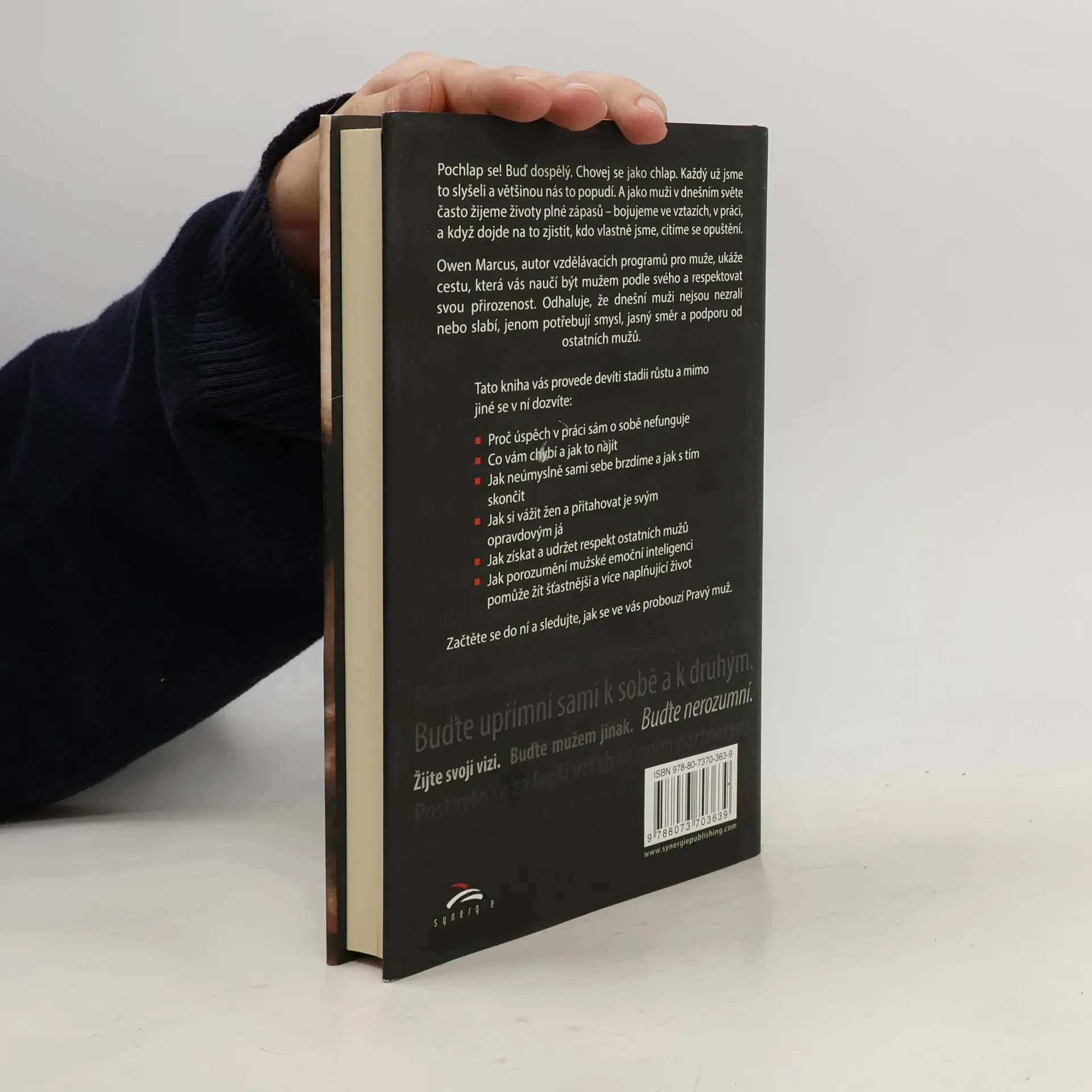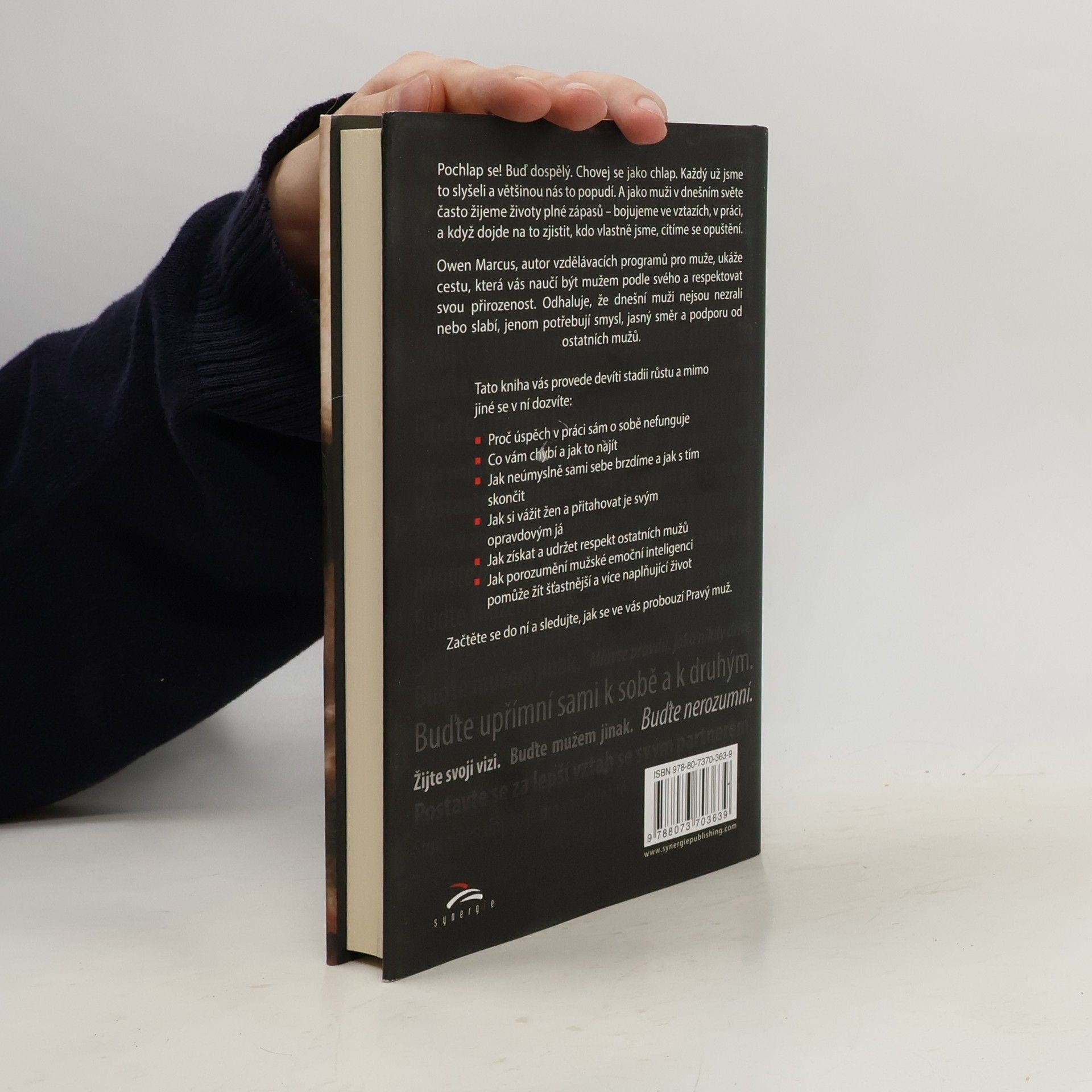 Pochlap se! Buď dospělý. Chovej se jako chlap. Každý už jsme to slyšeli a většinou nás to popudí. A jako muži v dnešním světe často žijeme životy plné zápasů – bojujeme ve vztazích, v práci, a když dojde na to zjistit, kdo vlastně jsme, cítíme se opuštění. Owen Marcus, autor vzdělávacích programů pro muže, ukáže cestu, která vás naučí být mužem podle svého a respektovat svou přirozenost. Odhaluje, že dnešní muži nejsou nezralí nebo slabí, jenom potřebují smysl, jasný směr a podporu od ostatních mužů. Tato kniha vás provede devíti stadii růstu a mimo jiné se v ní dozvíte: Proč úspěch v práci sám o sobě nefunguje Co vám chybí a jak to najít Jak neúmyslně sami sebe brzdíme a jak s tím skončit Jak si vážit žen a přitahovat je svým opravdovým já Jak získat a udržet respekt ostatních mužů Jak porozumění mužské emoční inteligenci pomůže žít šťastnější a více naplňující život Začtěte se do ní a sledujte, jak se ve vás probouzí Pravý muž.