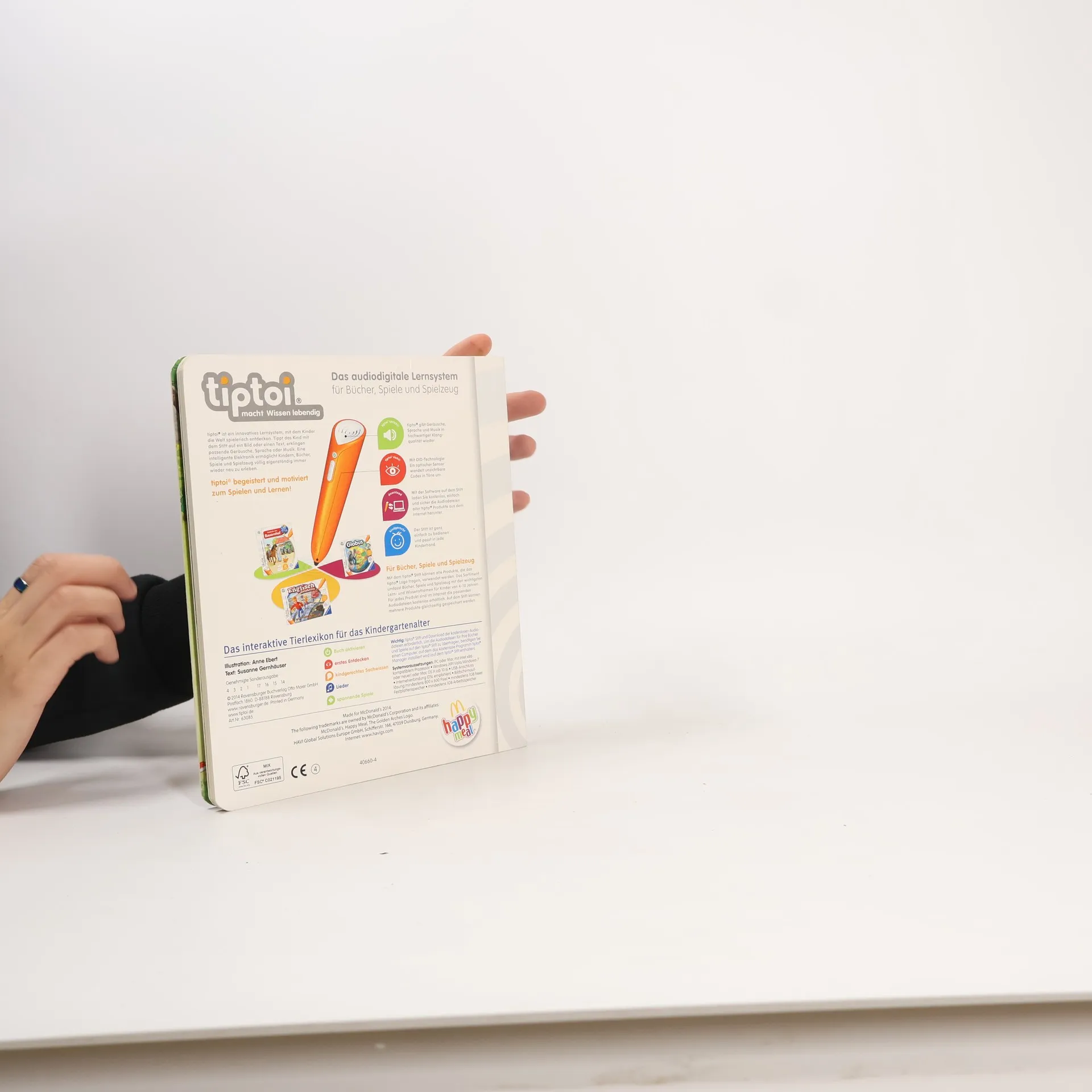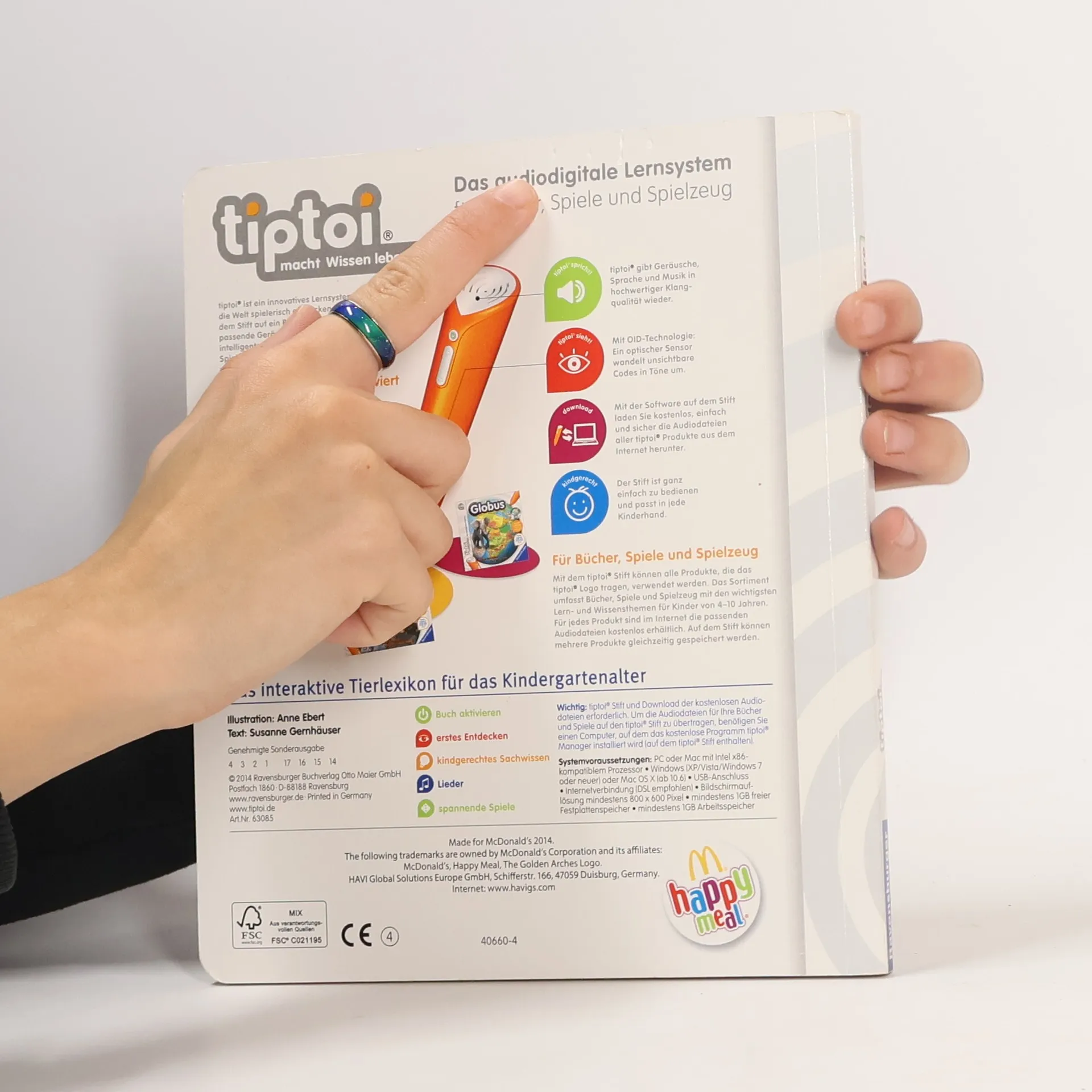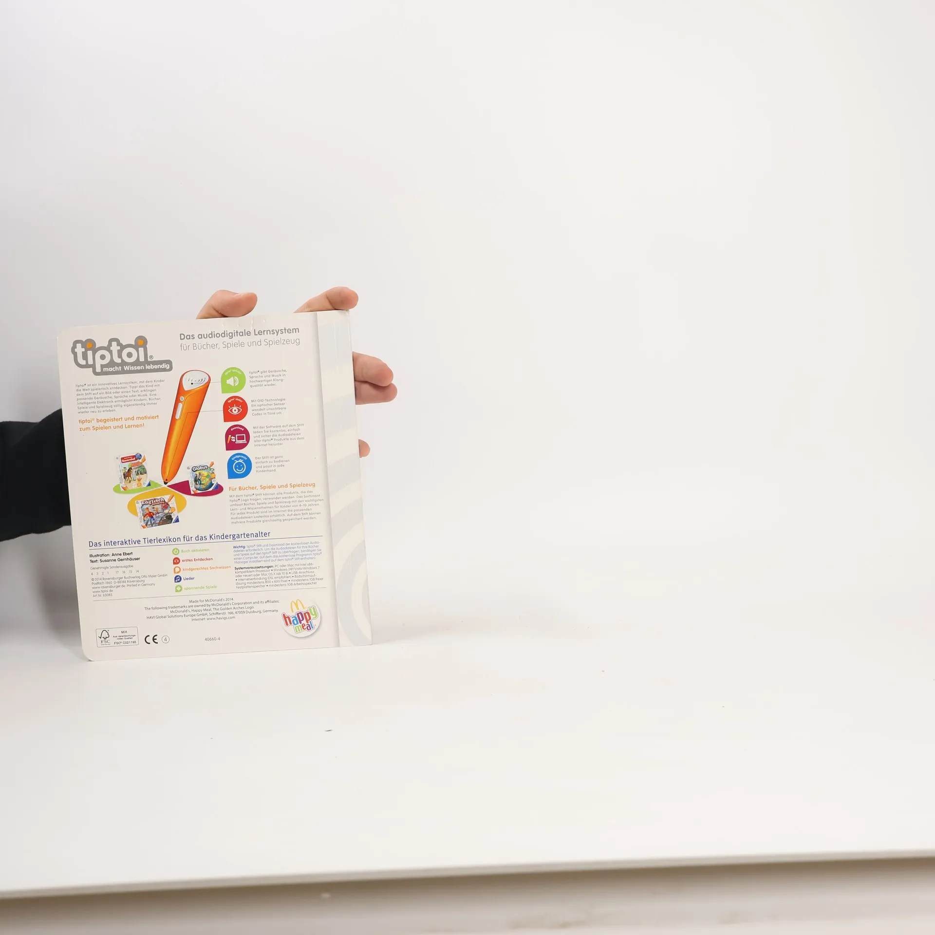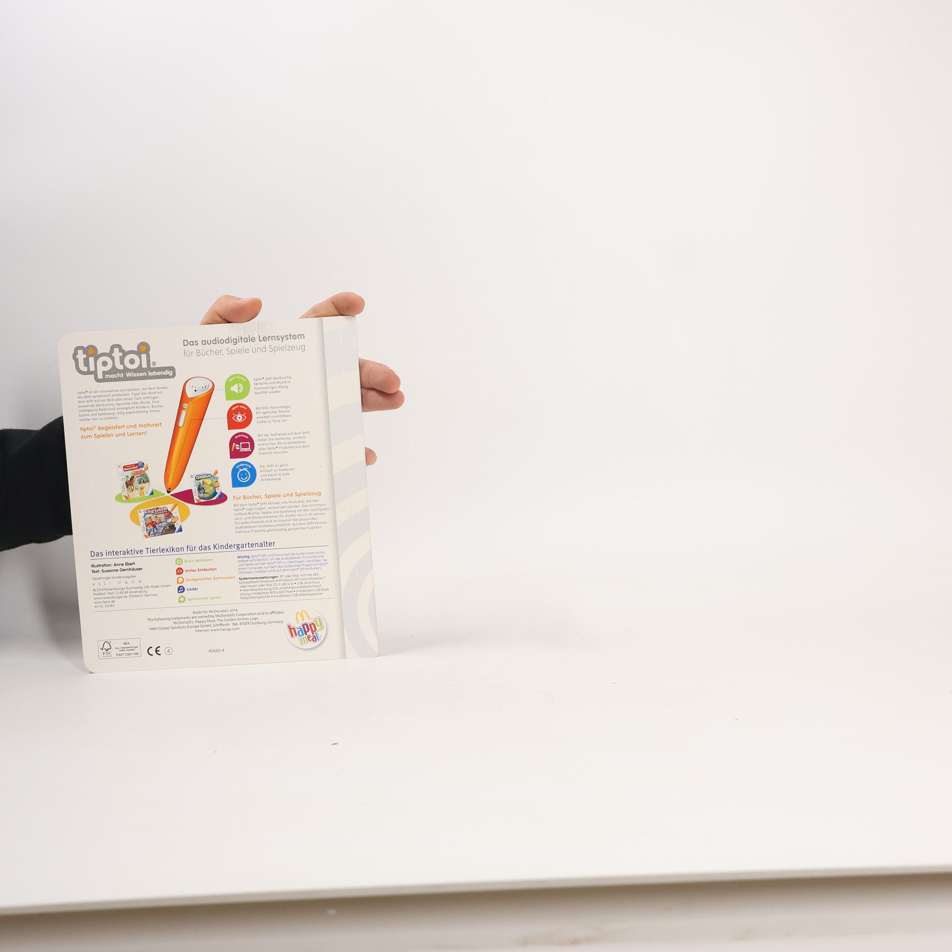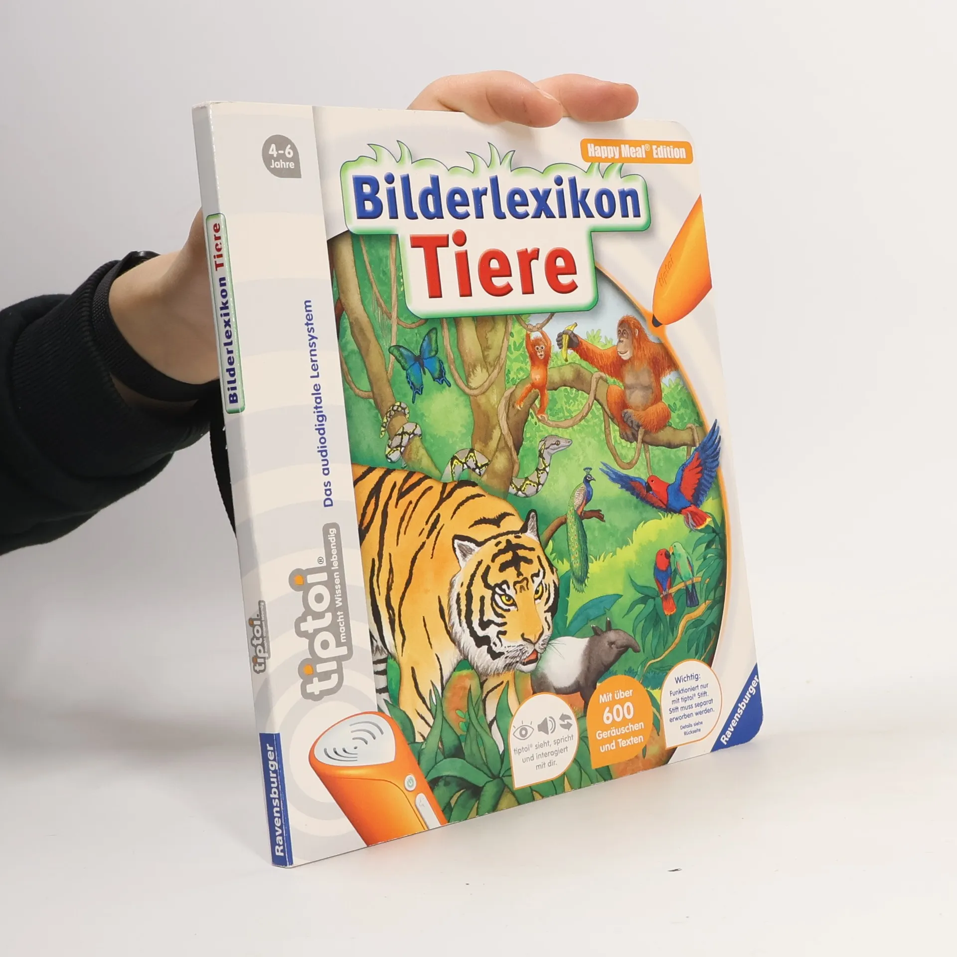 Das interaktive Tierlexikon für das Kindergartenalter Der tiptoi-Stift nimmt kleine Entdecker mit auf eine aufregende Reise ins Tierreich. Ob in den Bergen, der Arktis und Antarktis, im Wald, am Wasser, im Meer oder Dschungel: Die Bewohner unterschiedlichster Lebensräume warten darauf entdeckt zu werden - und mit ihnen viele spannende Geräusche, Geschichten, Lieder und Spiele. Kindgerecht wird so erstes Sachwissen rund um die vielfältige Tierwelt erlebbar gemacht! Wo sind Rehe und Wildschweine zu Hause? Wie sieht die Tierwelt unter Wasser aus? Wer lebt in der Savanne? In diesem Bilderbuch lernen Kinder ab 4 Jahren interaktiv die Welt der Tiere kennen. Spannendes Sachwissen, authentische Geräusche und kurze Geschichten lassen die detailreichen Illustrationen lebendig werden. Spielerisch wird die Konzentrationsfähigkeit gefördert und die Neugier beim selbstständigen Ausprobieren und Lernen geweckt. tiptoi-Stift nicht enthalten. Muss separat erworben werden.