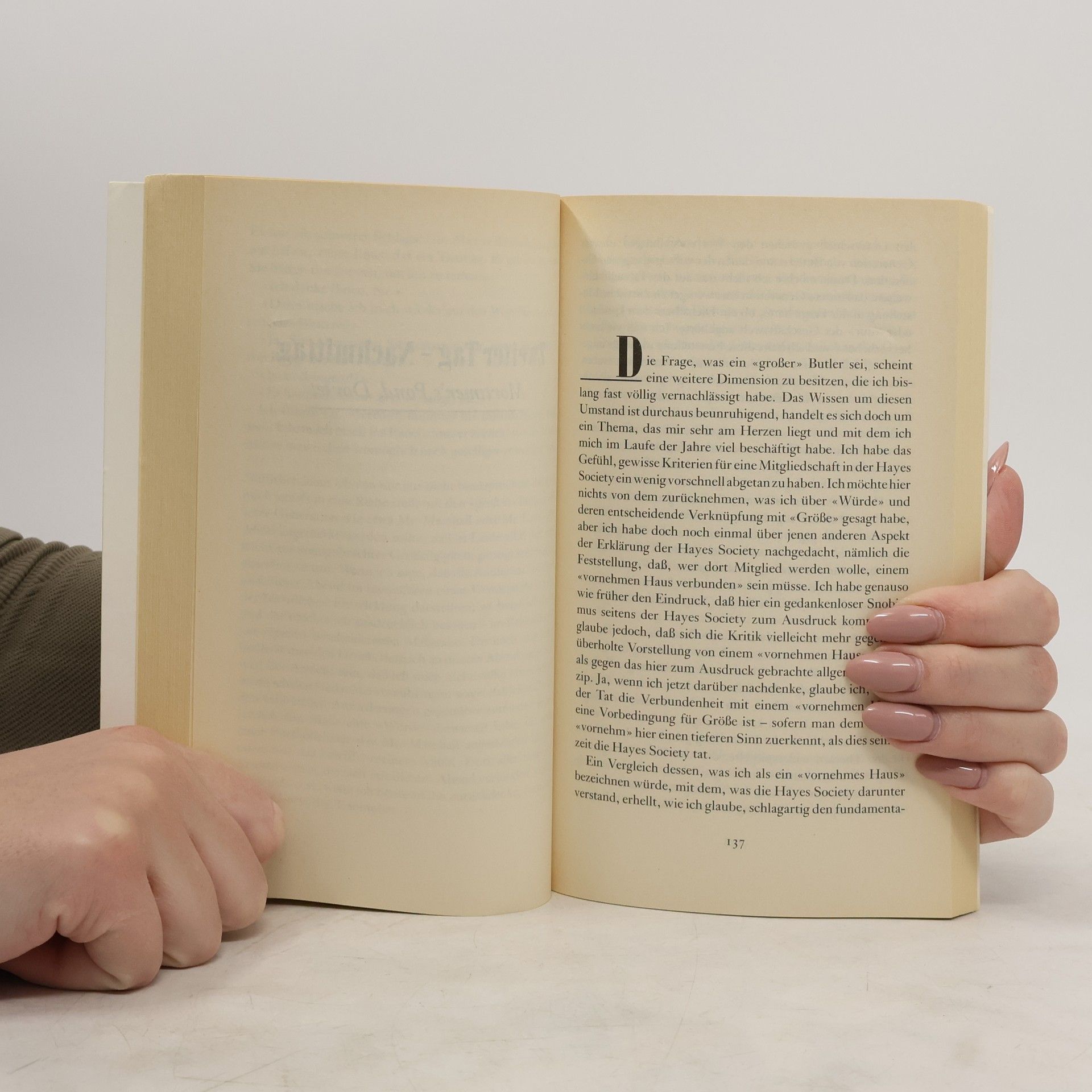 Stevens dient als Butler in Darlington Hall. Er sorgt für einen tadellosen Haushalt und ist die Verschwiegenheit in Person: Niemals würde er auch nur ein Wort über die merkwürdigen Vorgänge im Herrenhaus verlieren. Er stellt sein Leben voll und ganz in den Dienst seines Herrn. Auch die vorsichtigen Annäherungsversuche von Miss Kenton, der Haushälterin, weist er brüsk zurück. Viele Jahre lang lebt ergeben in seiner Welt, bis ihn eines Tages die Vergangenheit einholt. Das kritische Portrait einer von Klasse und Hierarchien geprägten Gesellschaft und eine bittersüße Liebesgeschichte, erzählt von einem, der seinen Stand nie hinterfragt und der nie auch nur geahnt hat, dass er liebte. Zum Literaturnobelpreis 2017 jetzt als bibliophlie Sonderausgabe.