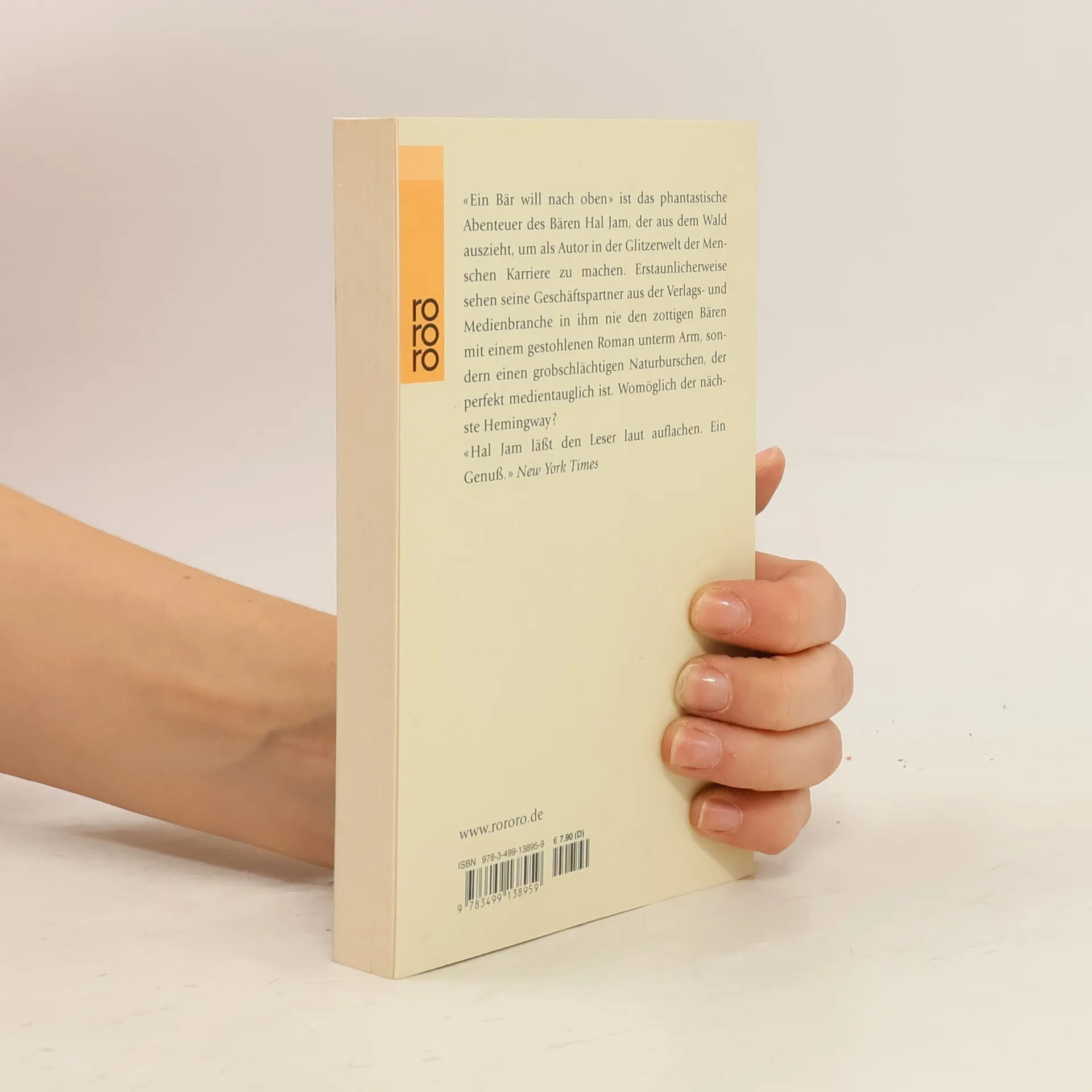 «Ein Bär will nach oben» ist das phantastische Abenteuer des Bären Hal Jam, der aus dem Wald auszieht, um als Autor in der Glitzerwelt der Menschen Karriere zu machen. Erstaunlicherweise sehen seine Geschäftspartner aus der Verlags- und Medienbranche in ihm nie den zottigen Bären mit einem gestohlenen Roman unterm Arm, sondern einen grobschlächtigen Naturburschen, der perfekt medientauglich ist. Womöglich der nächste Hemingway?