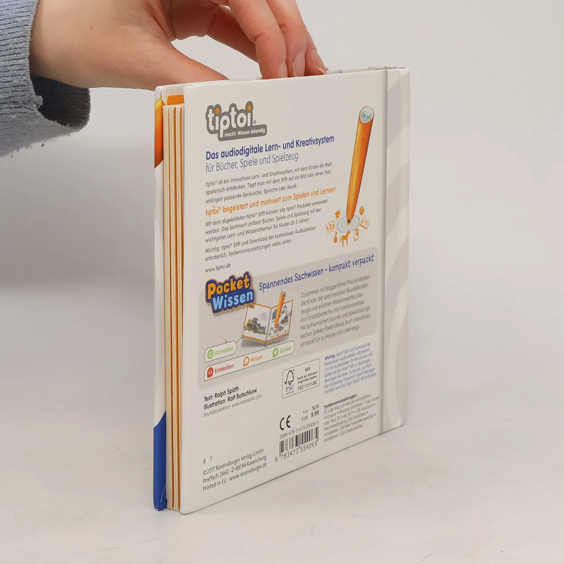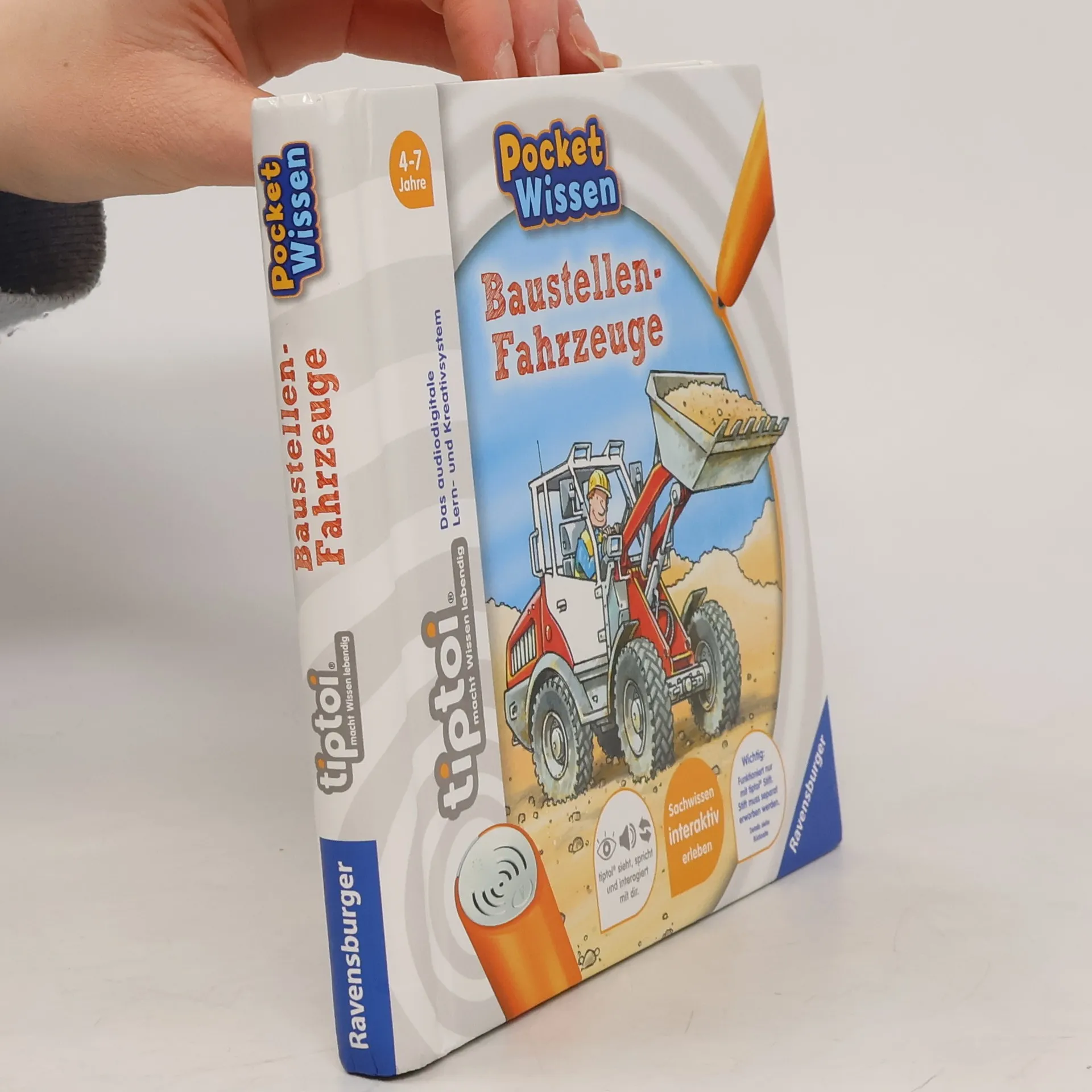 Kompaktes Sachwissen zum Mitnehmen rund um das Thema "Baustellenfahrzeuge" Ob Bagger, Kräne, Laster oder Walzen: Zusammen mit Bauarbeiter Paul entdecken Kinder die unterschiedlichen Fahrzeuge, die auf einer Baustelle im Einsatz sind. Was genau passiert im Betonmischer? Wie hoch ist ein Turmdrehkran? Und warum werden Schwertransporter manchmal von der Polizei begleitet? Diese und viele andere Fragen, die kleine Technikfans sich stellen, werden hier beantwortet. Detailgetreue Illustrationen, authentische Geräusche und Quizspiele lassen die Baustelle lebendig werden. Ob Pferde und Ponys, Dinosaurier, Ballett oder Feuerwehr, mit der Reihe tiptoi Pocket Wissen können Kinder von 4 - 7 Jahren all ihre Lieblingsthemen entdecken und sammeln. Jeder Band bietet kompaktes Sachwissen mit vielen interessanten Informationen, authentischen Geräuschen und kniffligen Spielen. Der tiptoi-Stift lässt die kindgerecht aufgearbeiteten Sachthemen lebendig werden. So können sich die Kinder spannende Wissensinhalte mit viel Spaß selbständig und interaktiv aneignen. Die abwechslungsreichen Spiele helfen dabei, das gelernte Wissen zu vertiefen. Dank des handlichen Formats ist tiptoi Pocket Wissen ideal für unterwegs, als Geschenk zum Kindergeburtstag oder zum Schmökern zu Hause. So wird Wissen einfach überall lebendig! tiptoi-Stift nicht enthalten. Muss separat erworben werden.