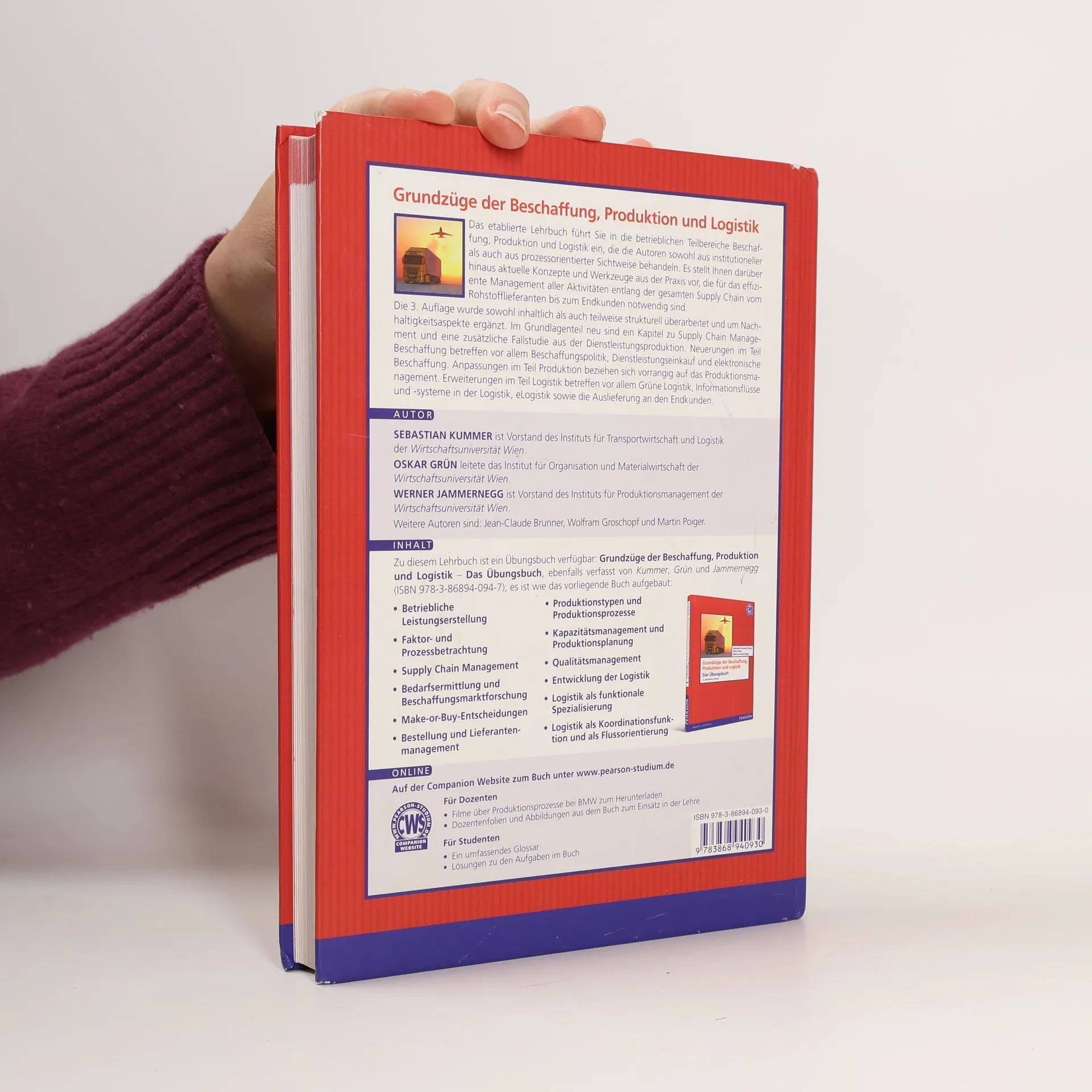 Die neuste Auflage des erfolgreichen Lehrbuchs Beschaffung, Produktion und Logistik von Sebastian Kummer, Oskar Grün und Werner Jammernegg. Die dritte Auflage wurde umfangreich aktualisiert, unter anderem zu den Themen Supply Chain Management, Beschaffungspolitik und elektronischer Einkauf.