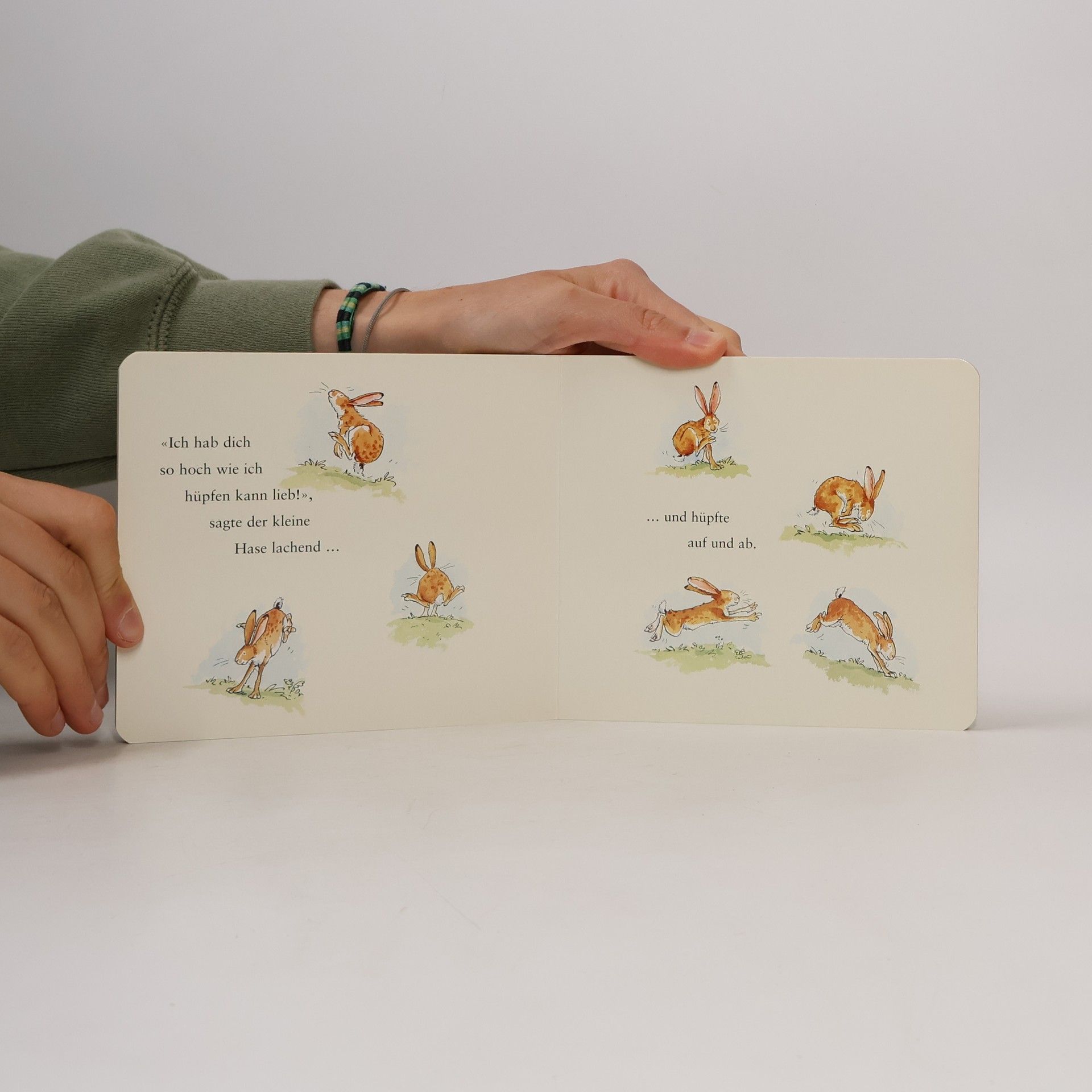 Der kleine Hase hat den großen Hasen lieb. Wie lieb? Sooo lieb hat er ihn und breitet die Ärmchen aus. Aber die Arme des großen Hasen reichen weiter.Manchmal, wenn man jemanden sehr, sehr gern hat, sucht man nach Worten, die dieses überwältigende Gefühl beschreiben können. Der kleine und der große Hase machen es vor, wie das gehen kann. Ein zeitlos schönes Bilderbuch.