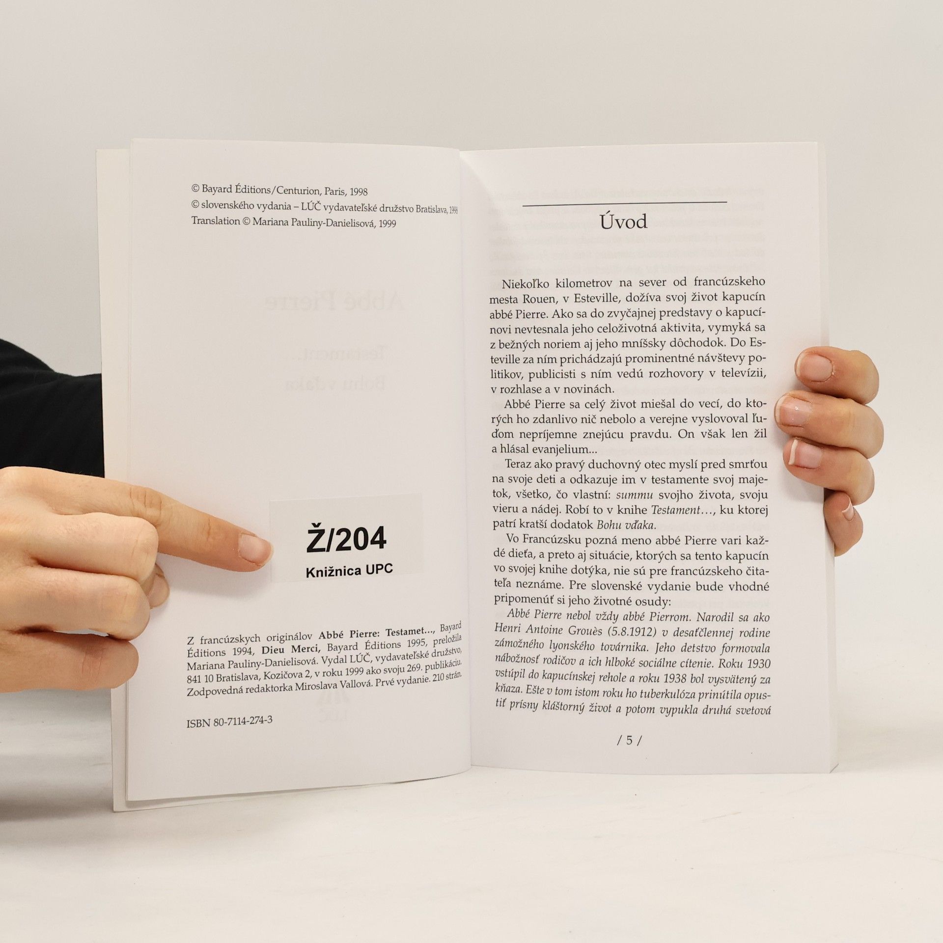 Testament ...Bohu vďaka, Abbé Pierre