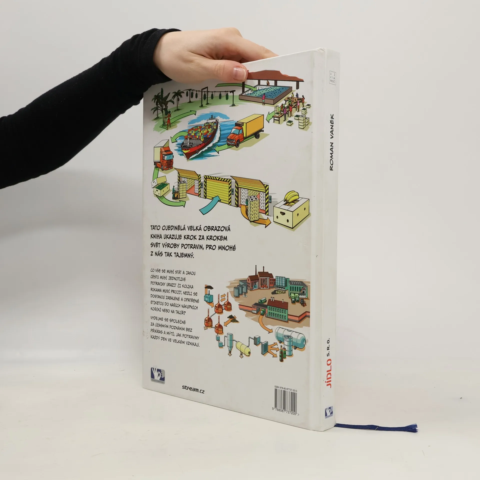 Velká naučná obrazová kniha autora kuchařských bestsellerů Romana Vaňka pro každého, kdo se chce dozvědět více o tajuplném vzniku potravin krok za krokem. Kniha boří některé mýty a díky moderním technologiím v mobilních telefonech zároveň zdarma zprostředkovává dobrodružnou cestu výroby nejen stovkami barevných fotografií, ale i krátkými filmy!! Školáci tak budou moci během výuky legálně vytáhnout z aktovek své „chytré“ telefony a nechat se filmově přenést do světa výroby. Kniha se tak může stát výbornou učební pomůckou nejen pro malé, ale i velké čtenáře. Každý moderní člověk by měl o koloběhu potravin a jejich výrobě znát co možná nejvíc. A to už od útlého věku.