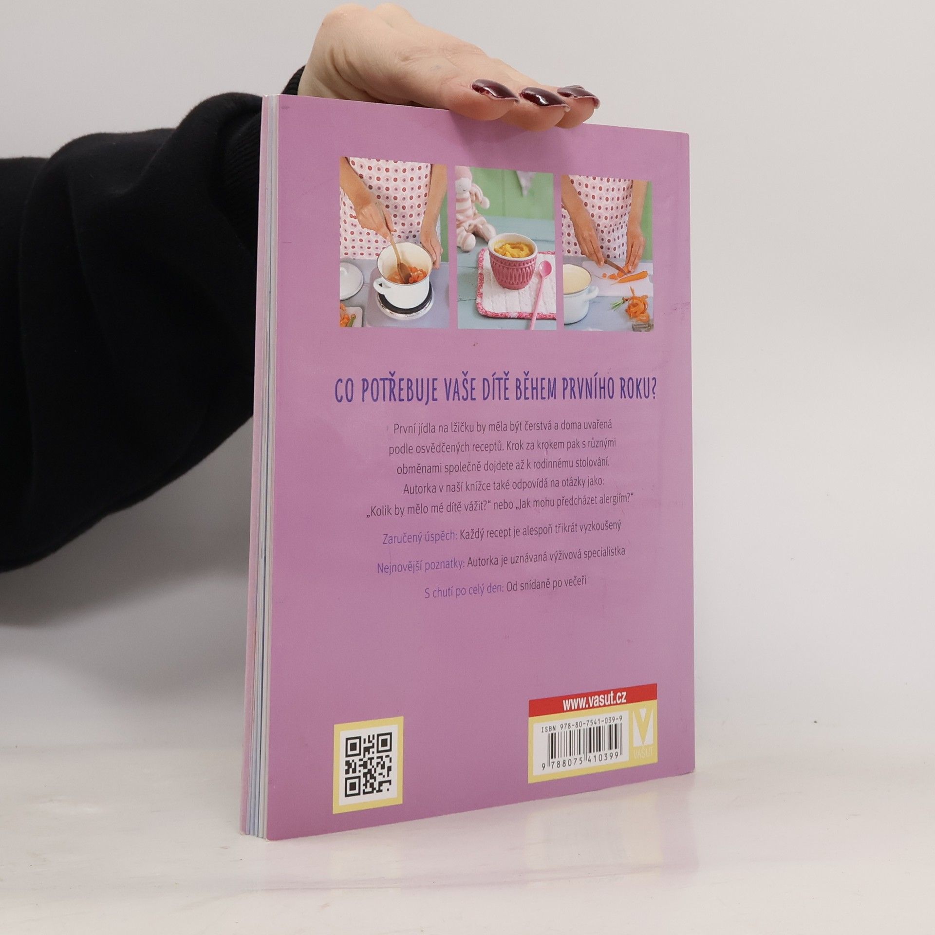 Zdravý jídelníček v prvním roce života. Když děťátko přijde na svět, potřebuje mateřské mléko nebo umělé kojenecké mléko, aby dobře rostlo. Ale už od začátku pátého měsíce mu samotné mléko přestává stačit. A v tu chvíli nastává čas na první kaše. Nejprve je to jen pár lžiček, ale postupně se z příkrmů stanou tři pravidelná jídla. A s prvními narozeninami bude vaše dítě plnohodnotným spolustolovníkem. Vyplatí se dítěti od začátku vařit čerstvá a pestrá jídla. Ochutná tak jejich opravdovou chuť a bude se učit zdravým stravovacím návykům v rodině. Navíc, co prospívá dítěti, přijde vhod i vám. Proto najdete v této knize vedle dětských kaší také jídla, která může jíst celá rodina – jen dětská porce bude bez soli a koření. Přirozeným způsobem se tak vaše dítě naučí jíst pestrou paletu chutí a vy se naučíte vařit z čerstvých surovin. V každém případě právě v tomto období pokládáte základní kameny zdravé a chutné rodinné kuchyně, která bude vaše dítě provázet celým životem a vám všem přinese mnoho hezkých společných chvil. Proto vám přejeme vždy dobrou chuť – a je jedno, jestli vaří máma, nebo táta. Každý recept je alespoň třikrát vyzkoušený.