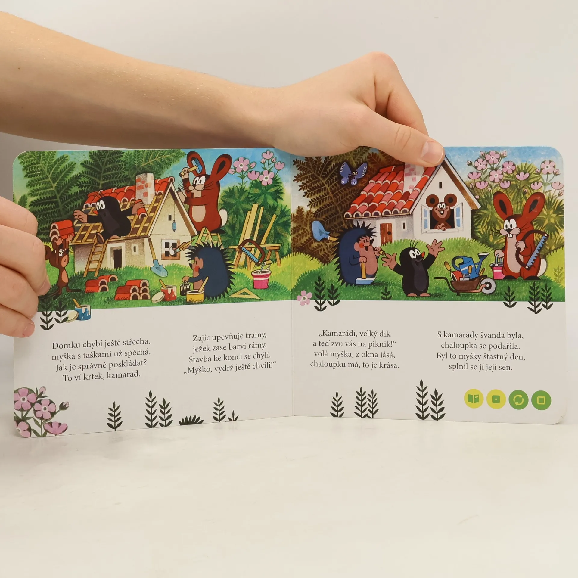 Nádherné ilustrace Zdeňka Milera zavedou děti za krtkem a jeho kamarády. Nejprve krtek pomůže se stavbou nového domku, který si vysnila myška, potom zachrání ztraceného zajíce a nakonec se vydá na výlet, kde ho překvapí medvědi. Krtek je zkrátka kamarád, se kterým rozhodně není nuda.