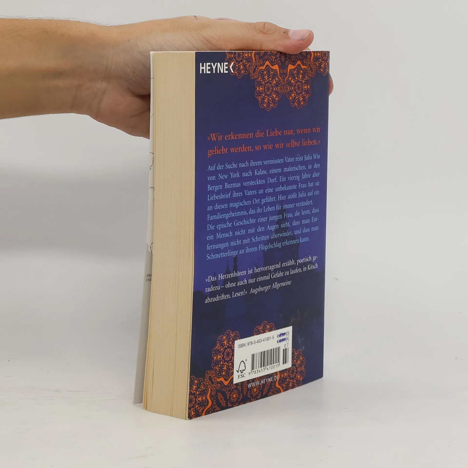 Eine der großen Liebesgeschichten unserer Zeit, die schon Hunderttausende Leserinnen begeisterte und stetig neue Leser findet: Die Suche nach ihrem vermissten Vater führt Julia Win von New York nach Kalaw, einem malerischen, in den Bergen Burmas versteckten Dorf. Ein vierzig Jahre alter Liebesbrief ihres Vaters an eine unbekannte Frau hat sie an diesen magischen Ort geführt. Hier findet sie nicht nur einen Bruder, von dem sie nichts wusste, sondern stößt auch auf ein Familiengeheimnis, das ihr Leben für immer verändert.