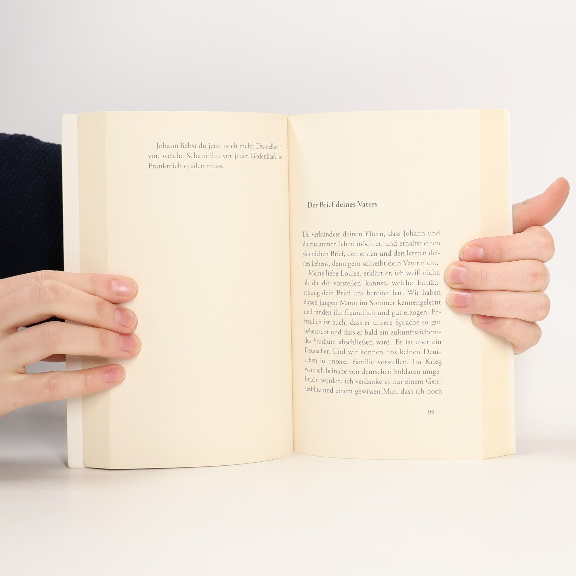 Louise wächst im Frankreich der Nachkriegszeit auf, Johann in Westdeutschland. An der Universität von Lyon – Johann ist dort Gaststudent – lernen sie sich kennen. Sie verlieben sich, heiraten, ziehen in ein deutsches Dorf, sehen ihre Kinder aufwachsen und ihre Eltern sterben. Für Louise ist es kein einfaches Leben in der neuen Heimat, ihr Mann ist dort ein anderer, als der, den sie kennengelernt hat. Irgendwann erfährt sie: Ihr Schwiegervater hat im Krieg gegen die Franzosen gekämpft. Ein ganzes Leben lang suchen Louise und Johann nach passenden Worten für eine Zeit, über die nie jemand sprechen wollte.
