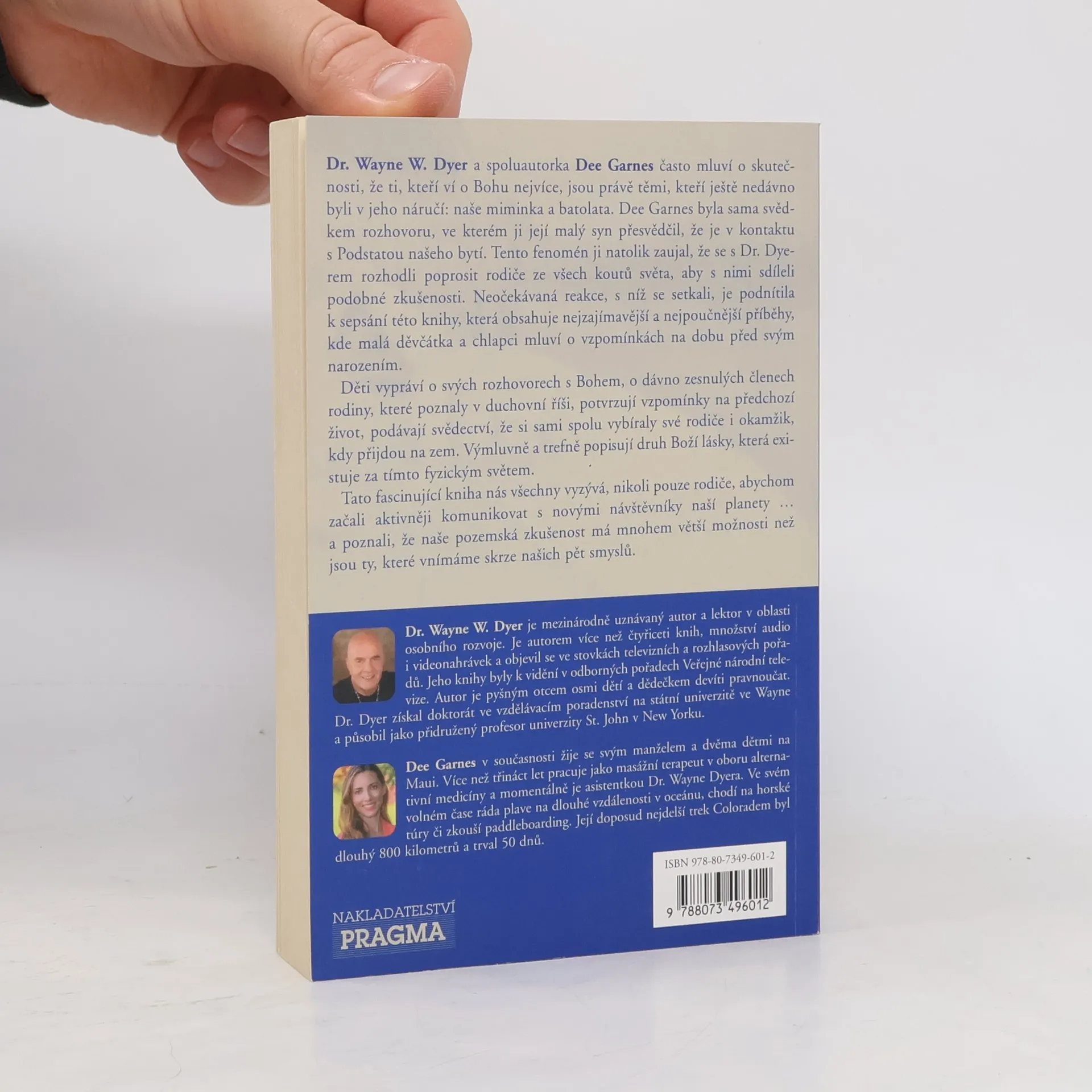 Autoři Wayne Dyer a Dee Garnes často mluví o skutečnosti, že ti, kteří ví o Bohu nejvíce, jsou právě těmi, kteří ještě nedávno byli v jeho náručí: naše miminka a batolata. Děti z celého světa v této knize vypráví o svých rozhovorech s Bohem, o zesnulých členech rodiny, které poznaly v duchovní říši, podávají svědectví, že si sami spolu vybíraly své rodiče i okamžik, kdy přijdou na zem. Výmluvně a trefně popisují druh Boží lásky, která existuje za tímto fyzickým světem. Tato fascinující kniha nás všechny vyzývá, nikoli pouze rodiče, abychom začali aktivněji komunikovat s novými návštěvníky naší planety a poznali, že naše pozemská zkušenost má mnohem větší možnosti než jsou ty, které vnímáme skrze našich pět smyslů.