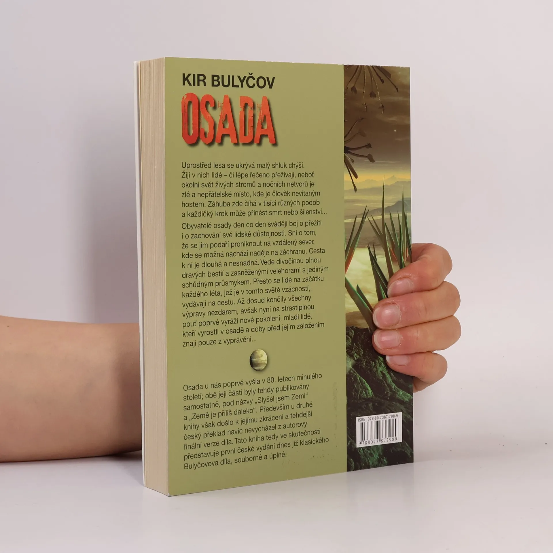 Uprostřed lesa se ukrývá malý shluk chýší. Žijí v nich lidé – či lépe řečeno přežívají, neboť okolní svět živých stromů a nočních netvorů je zlé a nepřátelské místo, kde je člověk nevítaným hostem. Záhuba zde číhá v tisíci různých podob a každičký krok může přinést smrt nebo šílenství... Obyvatelé osady den co den svádějí boj o přežití i o zachování své lidské důstojnosti. Sní o tom, že se jim podaří proniknout na vzdálený sever, kde se možná nachází naděje na záchranu. Cesta k ní je dlouhá a nesnadná. Vede divočinou plnou dravých bestií a zasněženými velehorami s jediným schůdným průsmykem. Přesto se lidé na začátku každého léta, jež je v tomto světě vzácností, vydávají na cestu. Až dosud končily všechny výpravy nezdarem, avšak nyní na strastiplnou pouť poprvé vyráží nové pokolení, mladí lidé, kteří vyrostli v osadě a doby před jejím založením znají pouze z vyprávění... Osada u nás poprvé vyšla v 80. letech minulého století; obě její části byly tehdy publikovány samostatně, pod názvy „Slyšel jsem Zemi“ a „Země je příliš daleko“. Především u druhé knihy však došlo k jejímu zkrácení a tehdejší český překlad navíc nevycházel z autorovy finální verze díla. Tato kniha tedy ve skutečnosti představuje první české vydání dnes již klasického Bulyčovova díla, souborné a úplné.