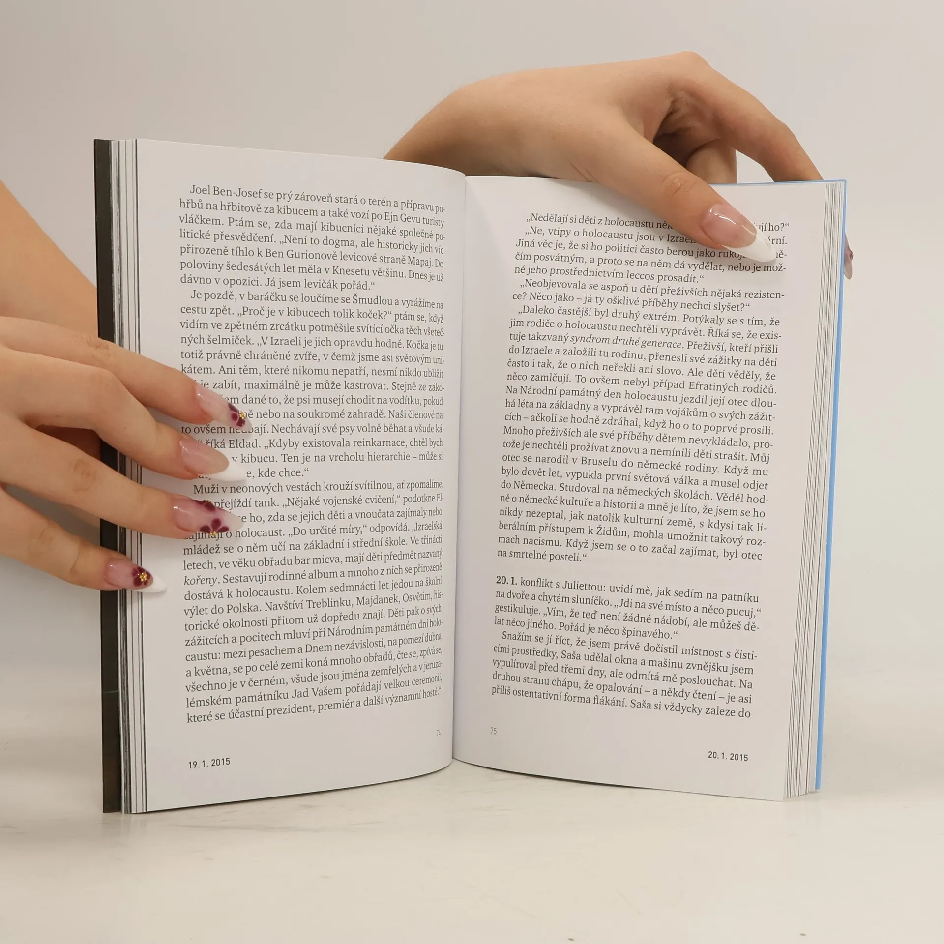 Kibucy byly od počátku 20. století jednou z forem osidlování mandátní Palestiny, které mělo podpořit návrat Židů z diaspory do „Země zaslíbené“. Od vzniku toho prvního v Deganiji v roce 1909 prošly bouřlivým vývojem a hrály důležitou roli ve válce o nezávislost Izraele. Původně komunistická družstva ale postupně krachovala a vylidňovala se, než kibucy chytily druhý dech a řada z nich se vyvinula v podniky nadprůměrně schopné obstát v tržním prostředí. Autor se na začátku roku 2015 vydal do jednoho z historicky nejvýznamnějších kibuců v Horní Galileji. Ejn Gev u malebného Galilejského (Kineretského) jezera se mu stal výchozím bodem pro cesty za Židy, kteří odešli nebo uprchli z Československa, aby začali od začátku, někdy našel jejich potomky. Pátral po tom, jaký život vedli v nové zemi. Potkával zemité kibucníky i ukřičenou komunitu mladých dobrovolníků z celého světa.