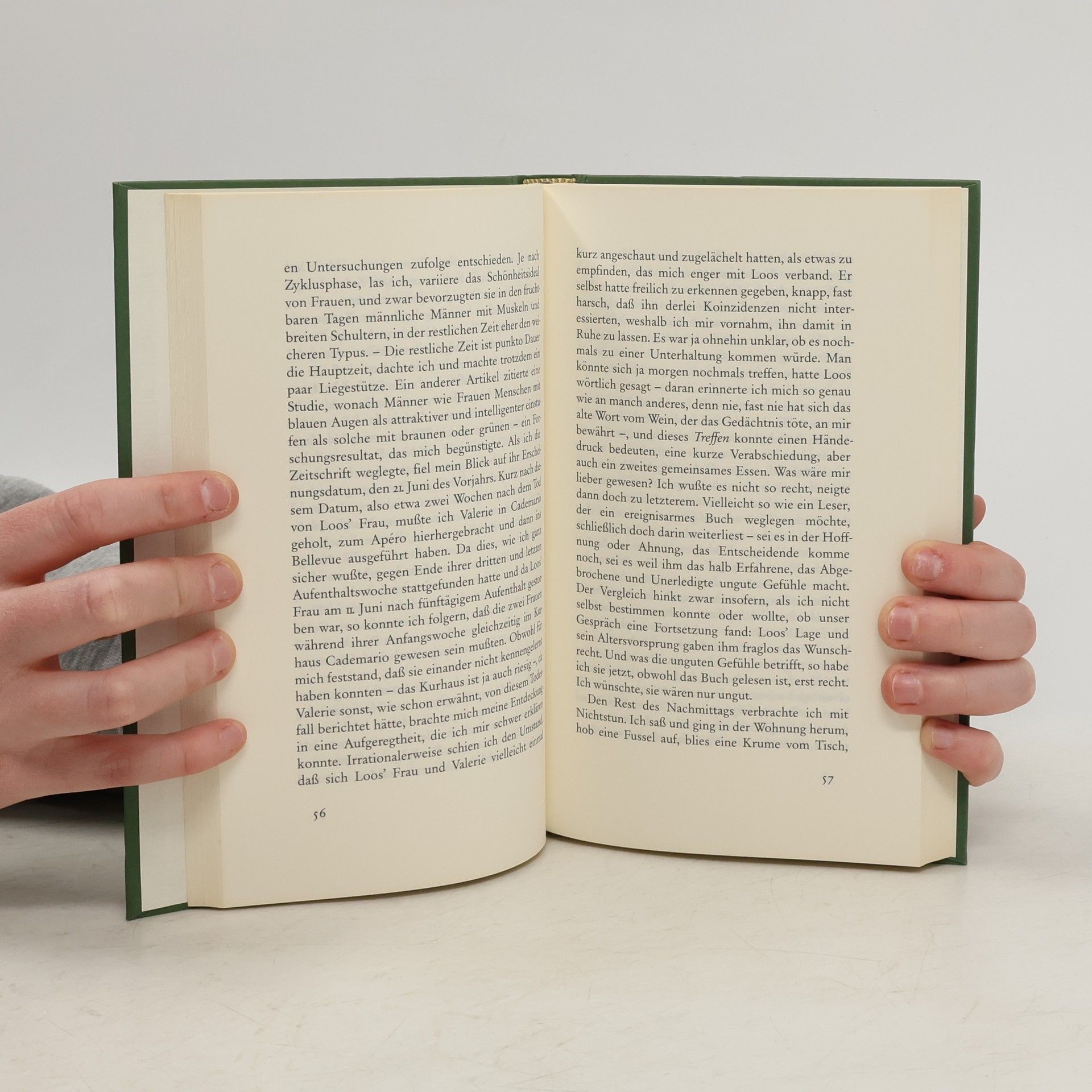 Der junge Scheidungsanwalt Clarin freut sich auf ein ungestörtes Pfingstwochenende in seinem Tessiner Ferienhaus, wo er einen Aufsatz für eine Fachzeitschrift schreiben möchte. Am ersten Abend lernt er auf der Terrasse des Hotels Bellavista einen älteren Mann kennen, einen scheinbar Verwirrten, einen Verrückten vielleicht. Sie reden und debattieren bis tief in die Nacht, und allmählich erzählen sie sich auch ihre Geschichten und Liebesgeschichten. Was als stockendes Gespräch zwischen Zufallsbekannten begonnen hat, entwickelt eine fiebrige, beklemmende Dynamik, der sich weder Clarin noch der Leser entziehen kann. Es sind zweifelhafte Umstände, unter denen Loos seine geliebte, fast vergötterte Frau verloren hat, und dieser Verlust scheint ihm die Welt schwer und verhasst zu machen. Clarin hingegen lebt leicht und gern. – Ferner könnten zwei Menschen einander nicht sein. Wie nah sie sich sind, stellt sich erst spät heraus.