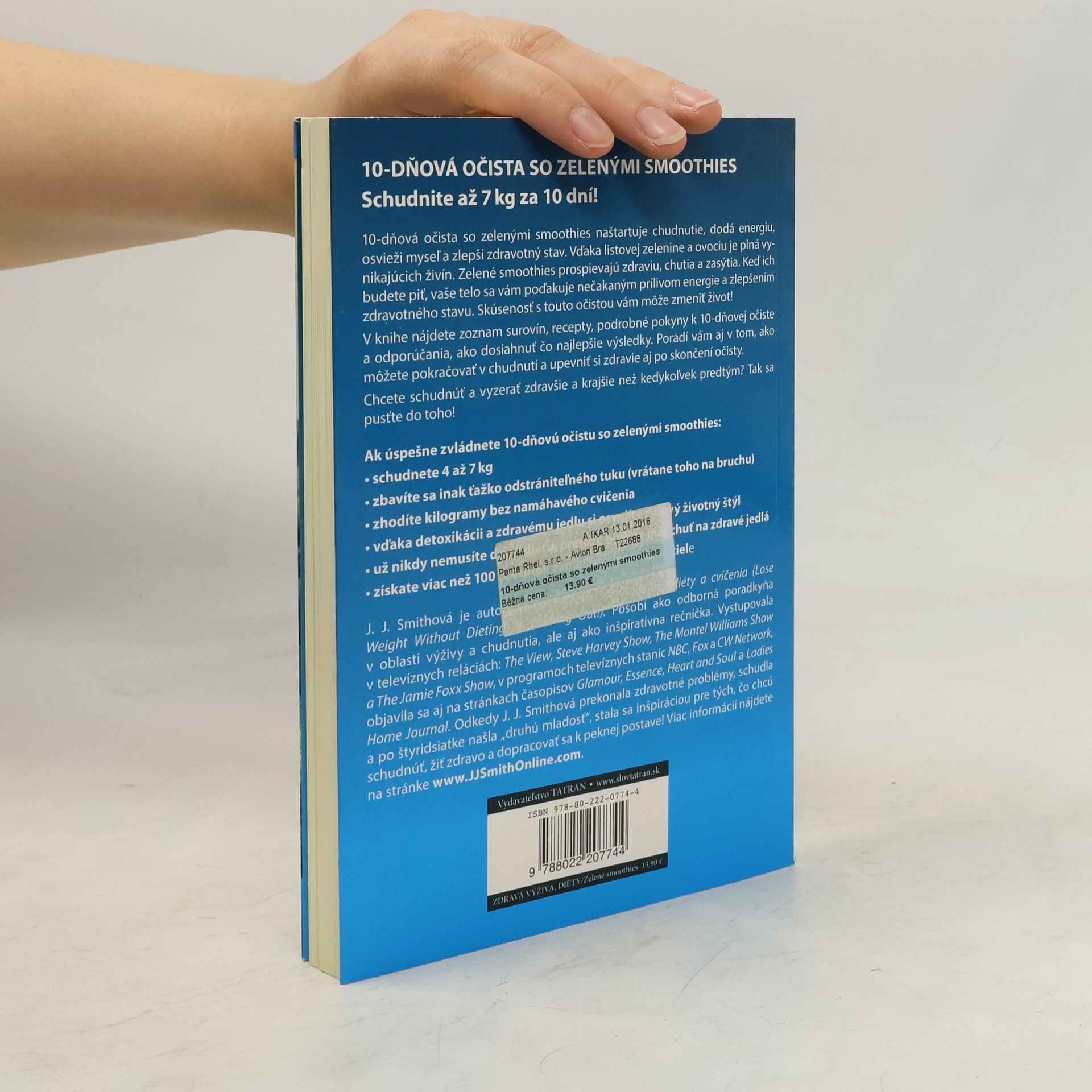 Boj s nadváhou je mimoriadne náročný a vyčerpávajúci. Napriek veľkému počtu zaručených diét, cvičebných postupov a zázračných tabletiek je obyvateľstvo planéty Zem čoraz tučnejšie. Ak sa vám aj podarí znížiť hmotnosť, deväťdesiatpäť percent z vás sa do troch rokov vráti na pôvodnú váhu. Čo teda pomôže? J.J. Smithová jednoznačne hovorí, že zmena životného štýlu. Desaťdňová očista má nastaviť vaše chuťové poháriky tak, aby ste si žiadali zdravšie jedlá. Podľa autorky je dôležité, aby sa ľudia v prvom rade zbavili toxínov, ktoré prijímajú v každodennej strave. Vo svojej knihe odporúča programy, ktoré sa zameriavajú na chudnutie prostredníctvom odbúravania tukov a detoxikácie, čo vedie k celkovému zlepšeniu zdravia a nadobudnutiu životnej rovnováhy. V knihe nájdete okrem 10-dňovej očisty viac ako 100 receptov na zelené smoothies s rôznymi účinkami.