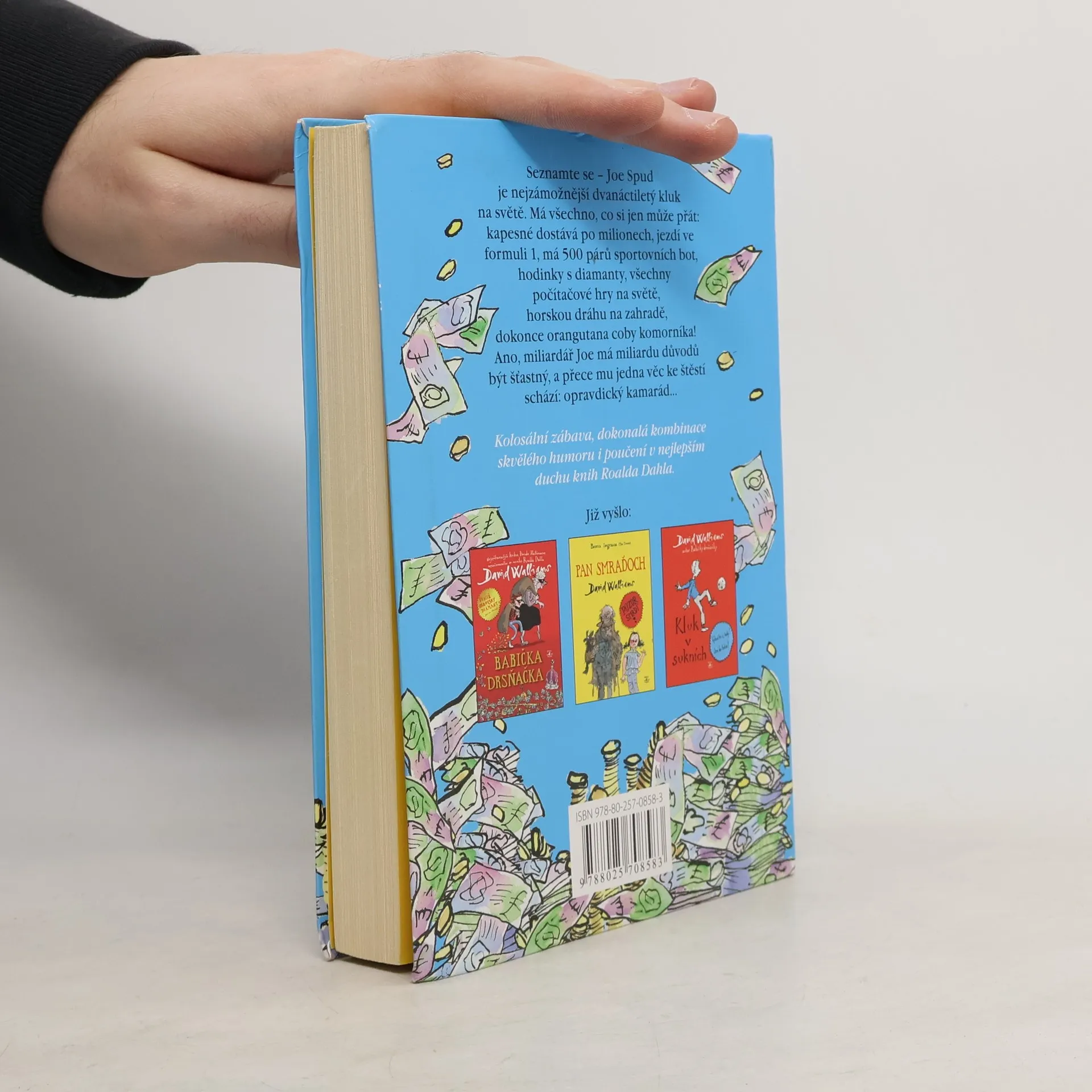Joe je boháč, přesně řečeno nejbohatší dvanáctiletý kluk v celé Británii. Má všechno, nač si vzpomene: vůz formule 1, kino, pět set párů sportovních bot, orangutana jako sluhu. A přece mu něco důležitého chybí: kamarád… Poprosí proto tátu, aby směl chodit (světe, div se!) do docela obyčejné školy, inkognito! Tím rozpoutá sérii bláznivých situací a neuvěřitelných trapasů, na jejímž konci Joe zjišťuje, že peníze a bohatství ke štěstí nestačí. David Walliams vypráví o věcech, které jsou k pláči, tak brilantně a s takovou dávkou skvělého humoru, že budete plakat smíchy. Právem je kritiky označován za nového Roalda Dahla.
