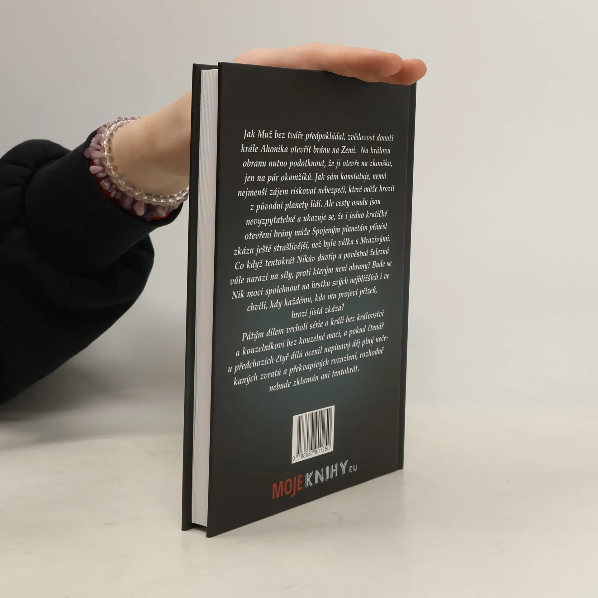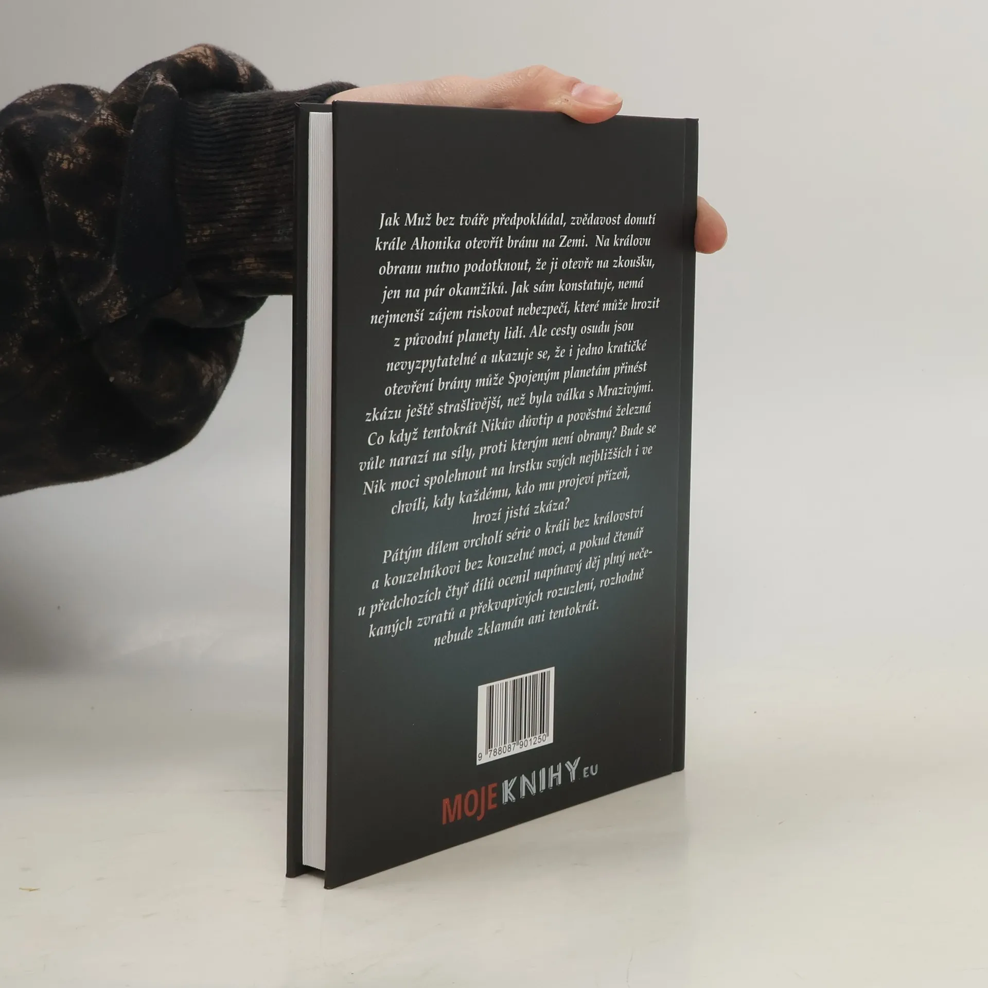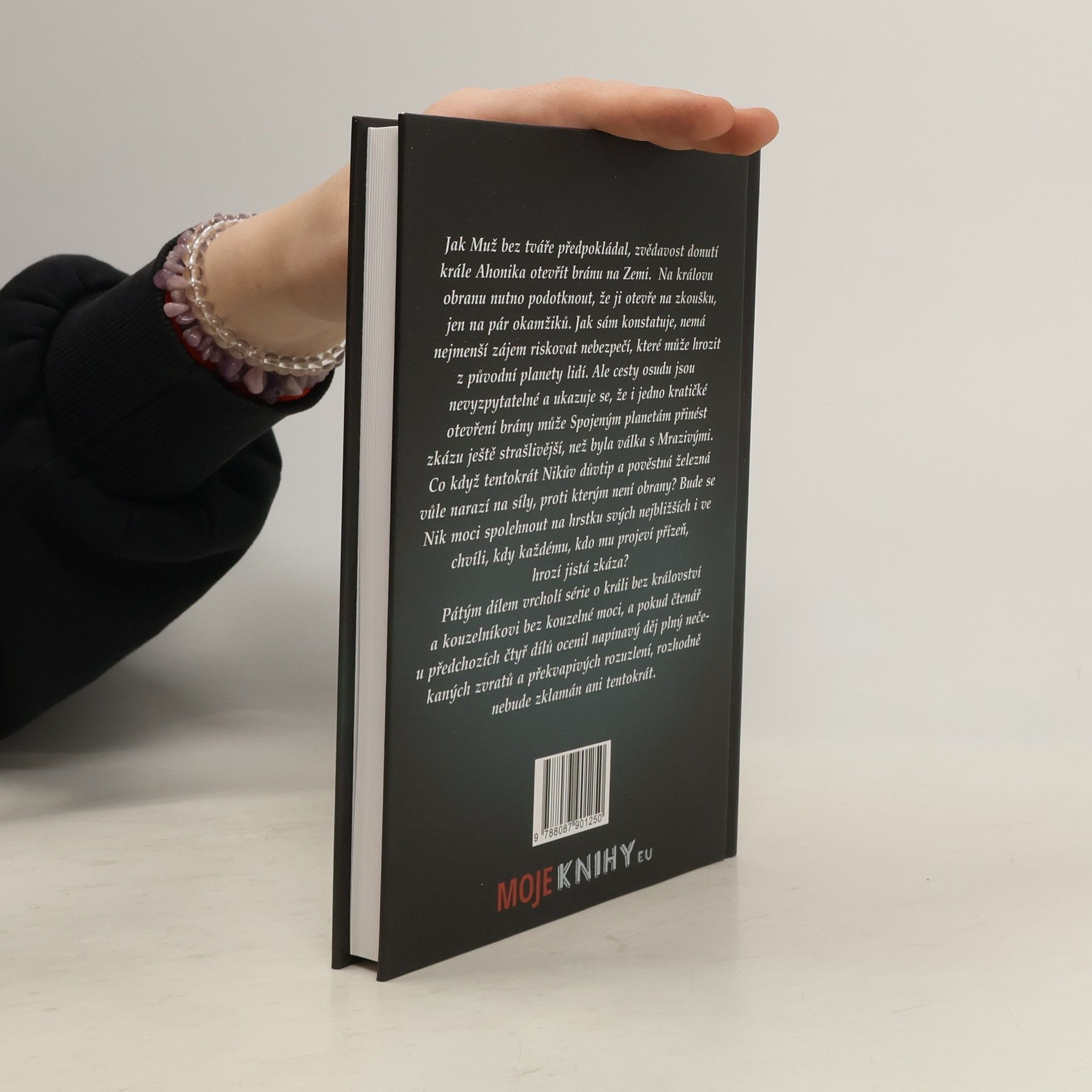 Jak Muž bez tváře předpokládal, zvědavost donutí krále Ahonika otevřít bránu na Zemi. Na Nikovu obhajobu budiž řečeno, že ji otevře na zkoušku, jen na pár okamžiků. Jak sám konstatuje, nemá nejmenší zájem riskovat nebezpečí, které může hrozit z původní planety lidí. Ale cesty osudu jsou nevyzpytatelné a ukazuje se, že i jedno kratičké otevření brány může Spojeným planetám přinést zkázu ještě strašlivější, než byla válka s Mrazivými. Co když tentokrát Nikův důvtip a pověstná železná vůle narazí na síly, proti kterým není obrany? Bude se moci spolehnout na hrstku svých nejbližších i ve chvíli, kdy každému, kdo mu projeví přízeň, hrozí jistá zkáza? Pátým dílem vrcholí série o králi bez království a kouzelníkovi bez kouzelné moci, a pokud čtenář u předchozích čtyř dílů ocenil napínavý děj plný nečekaných zvratů a překvapivých rozuzlení, rozhodně nebude zklamán ani tentokrát.