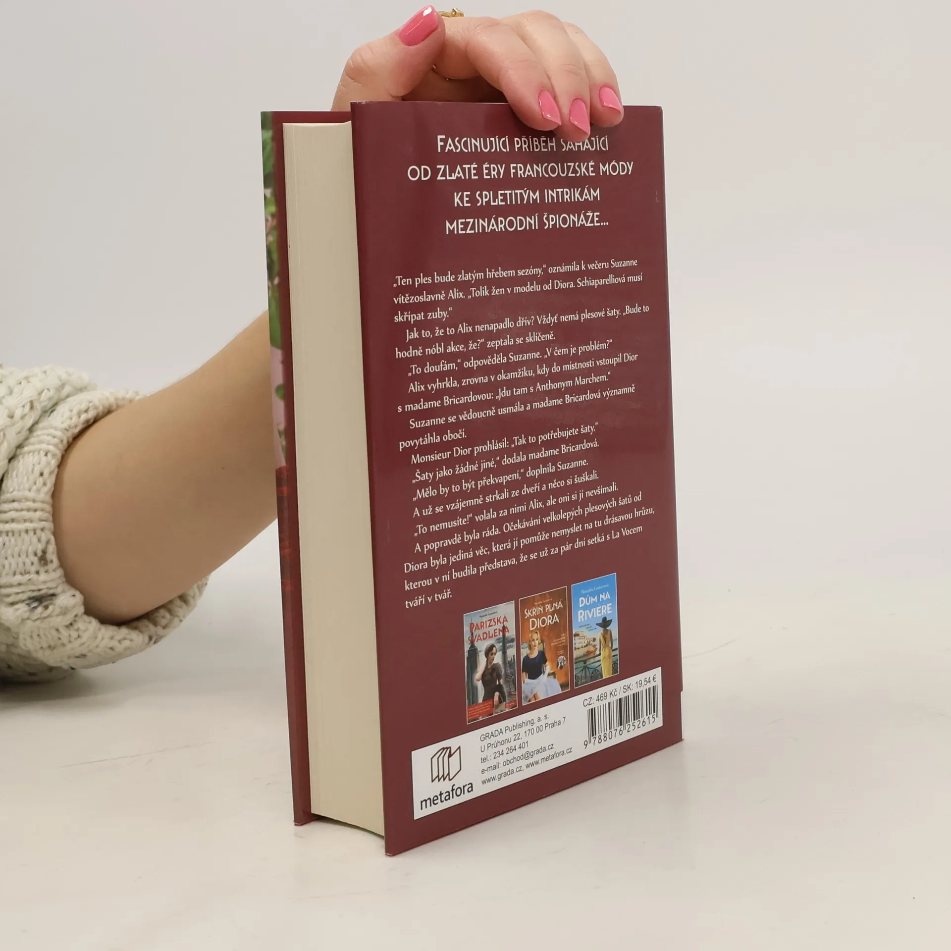 Alix St. Pierreová vyrostla obklopena leskem Hollywoodu. Jakožto sirotek ho však pozorovala jen zpovzdálí. Zatímco v roce 1943 zuří světová válka a muži odplouvají do zámoří, Alix se podaří získat práci v marketingu. Díky jejímu charismatu a rychlému uvažování ale brzy zaujme pozornost americké vlády, která ji postaví před ještě větší výzvu – odjet do Švýcarska coby špionka. Alix neodmítne a záhy přichází na stopu něčeho velkého. Opravdu velkého. Může ale doopravdy věřit svému informátorovi?Po konci příliš dlouho trvající války se Alix stěhuje do Paříže, připravena nastoupit na novou pozici v tiskovém oddělení v právě se rozjíždějícím módním domě Christiana Diora. V opulentních prostorech nové luxusní značky dokáže téměř zapomenout na všechno, co ztratila, i na nebezpečná tajemství, jež zná pouze ona. Když se ale na scéně objeví člověk z její minulosti a hrozí, že zničí její budoucnost, uvědomuje si, že dávné křivdy může napravit jen ona sama.