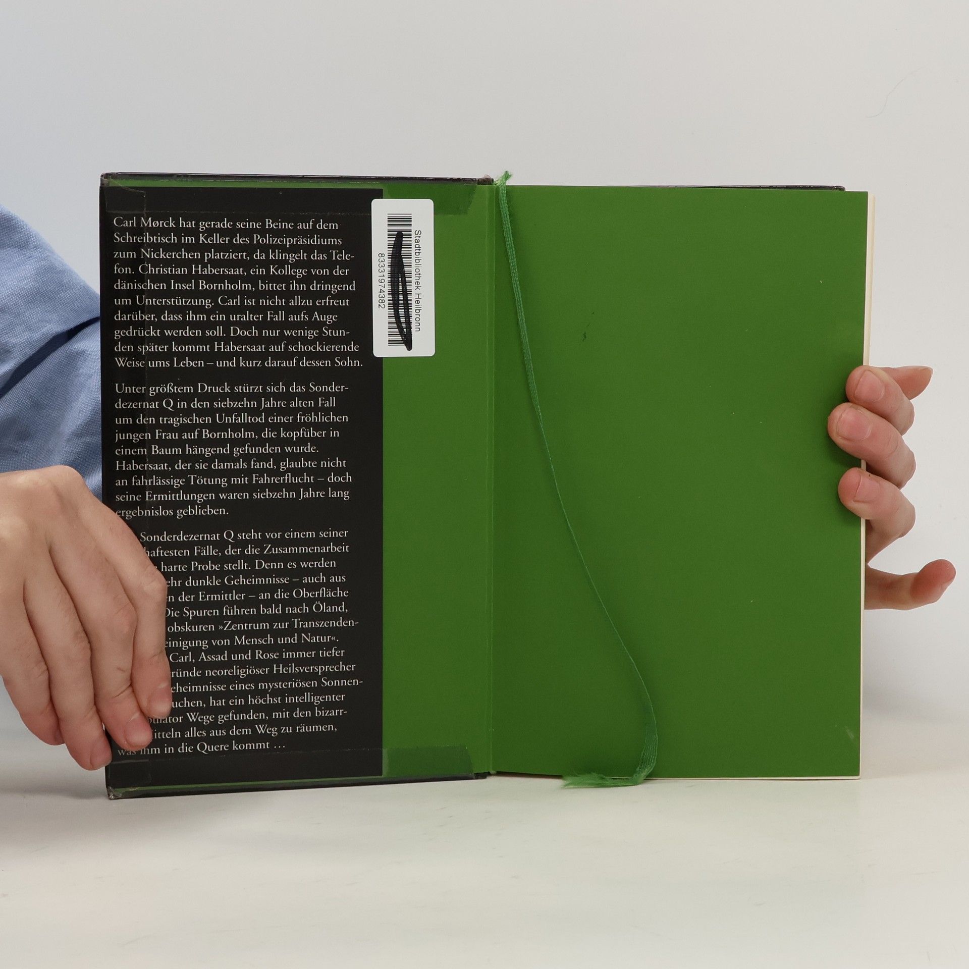 Siebzehn Jahre lang hat Polizeikommissar Christian Habersaat vergeblich versucht, den Tod einer jungen Frau aufzuklären, die kopfüber in einem Baum hängend aufgefunden wurde. Kurz nachdem er Carl Mørck um Hilfe gebeten hat, kommt er auf schockierende Weise ums Leben – und nur wenig später sein Sohn. Die Recherchen des Sonderdezernats Q führen nach Öland, zu einem obskuren »Zentrum zur Transzendentalen Vereinigung von Mensch und Natur«. Carl Mørck und seine Assistenten ahnen nicht, dass sie sich in tödliche Gefahr begeben ...