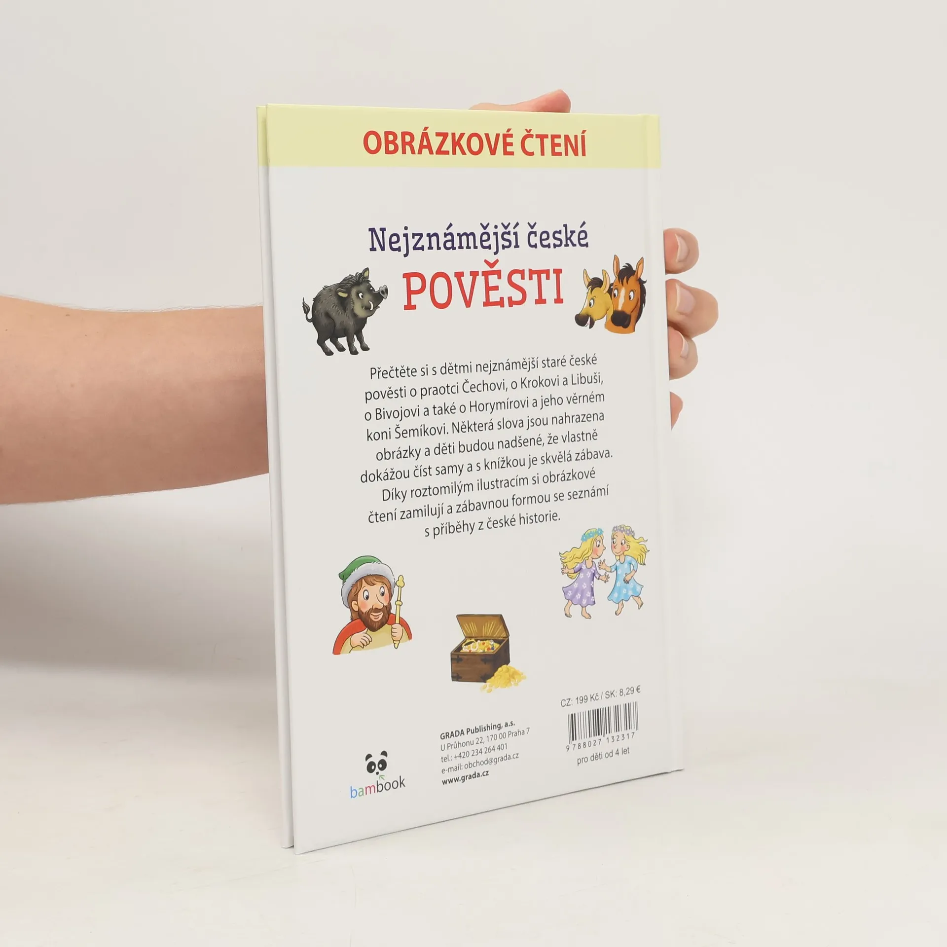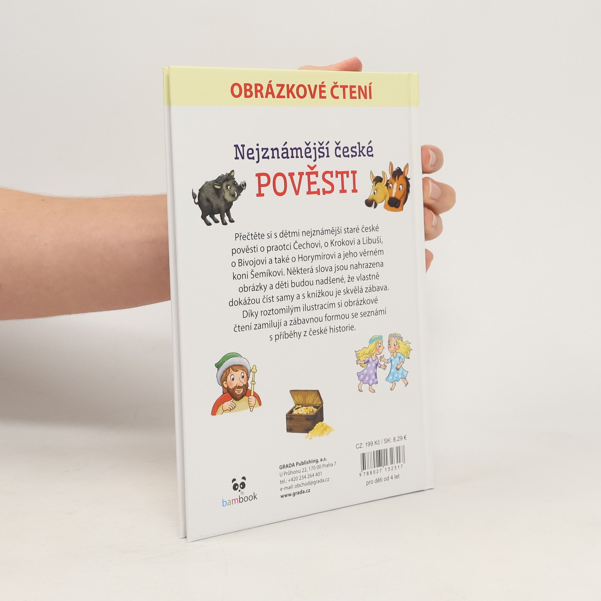 Přečtěte si s dětmi nejznámější staré české pověsti o praotci Čechovi, o Krokovi a Libuši, o Bivojovi a také o Horymírovi a jeho věrném koni Šemíkovi. Některá slova jsou nahrazena obrázky a děti budou nadšené, že vlastně dokážou číst samy a s knížkou je skvělá zábava. Díky roztomilým ilustracím si obrázkové čtení zamilují a zábavnou formou se seznámí s příběhy z české historie.