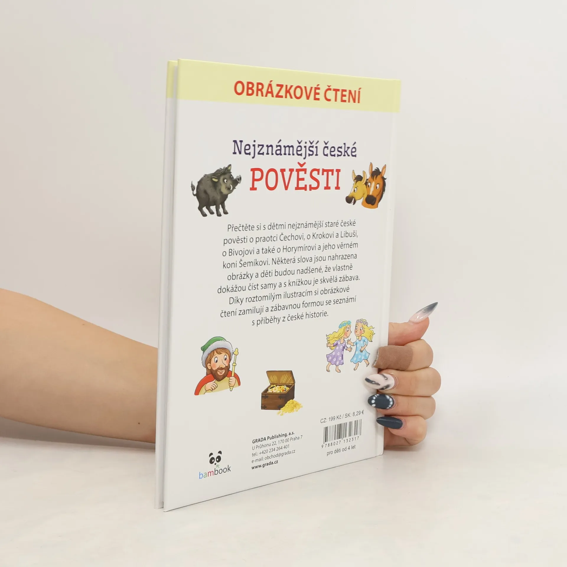 Přečtěte si s dětmi nejznámější staré české pověsti o praotci Čechovi, o Krokovi a Libuši, o Bivojovi a také o Horymírovi a jeho věrném koni Šemíkovi. Některá slova jsou nahrazena obrázky a děti budou nadšené, že vlastně dokážou číst samy a s knížkou je skvělá zábava. Díky roztomilým ilustracím si obrázkové čtení zamilují a zábavnou formou se seznámí s příběhy z české historie.