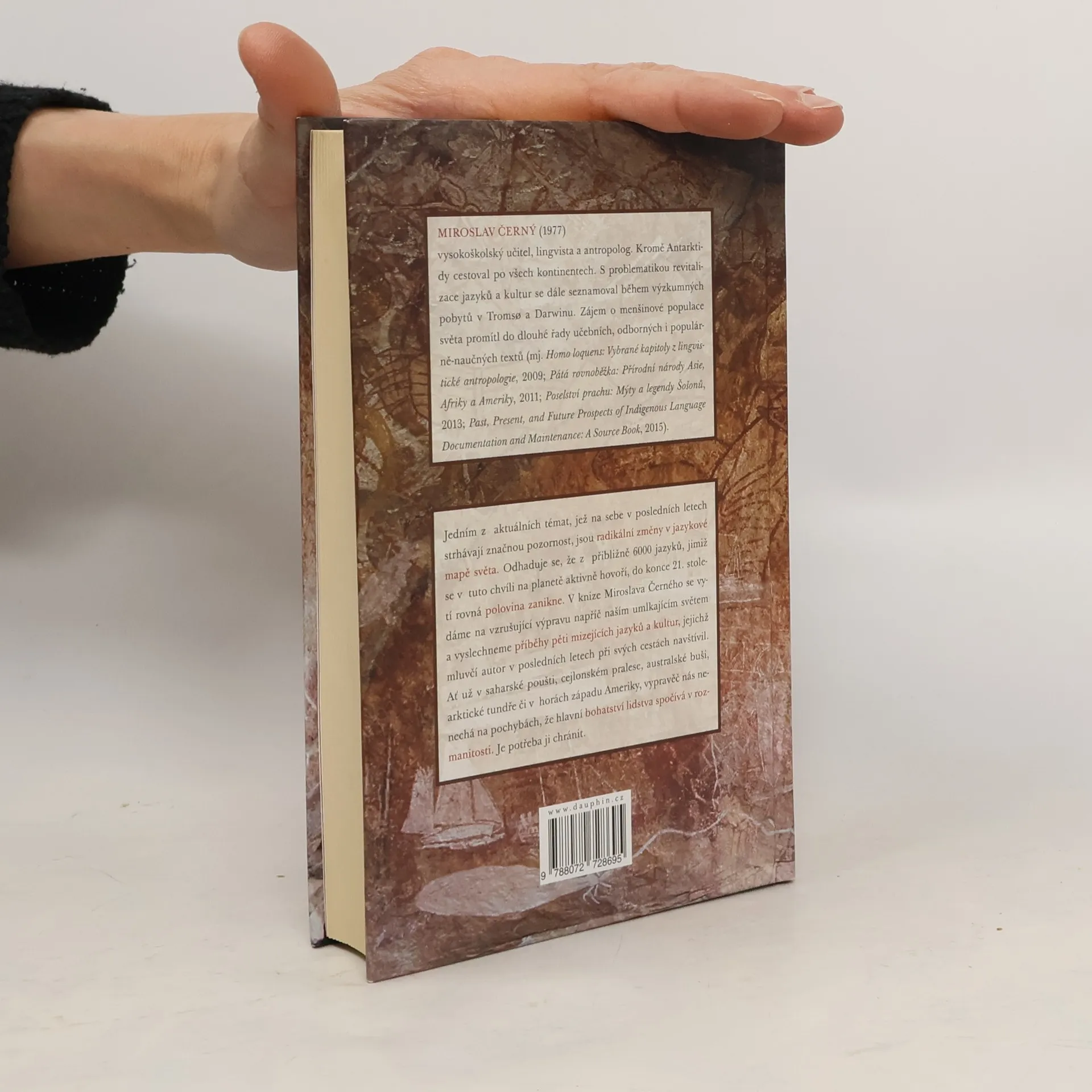 Jedním z aktuálních témat, jež na sebe v posledních letech strhávají vysokou míru pozornosti, jsou radikální změny na jazykové mapě světa. Bylo vyčísleno, že z přibližně 6000 jazyků, jimiž se v tuto chvíli na planetě aktivně hovoří, do konce 21. století rovná polovina zanikne. V knize Miroslava Černého se vydáme na vzrušující výpravu napříč naším umlkajícím světem a vyslechneme příběhy pěti mizejících jazyků a kultur, které autor v posledních letech při svých cestách navštívil. Ať už v saharské poušti, cejlonském pralese, australské buši, arktické tundře či v horách západu Ameriky, vypravěč nás nenechá na pochybách, že hlavní bohatství lidstva spočívá v rozmanitosti a tu je třeba chránit.