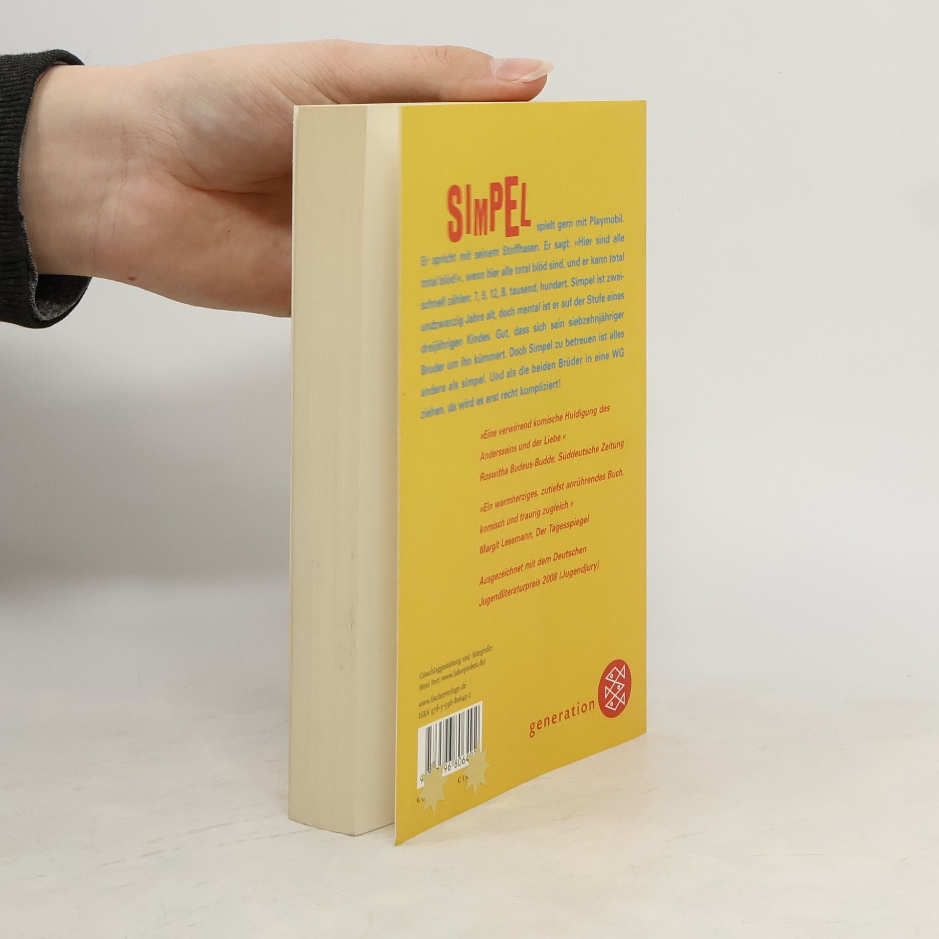 Simpel spielt gern mit Playmobil. Er spricht mit seinem Stoffhasen. Er sagt: »Hier sind alle total blöd!«, wenn hier alle total blöd sind, und er kann total schnell zählen: 7, 9, 12, B, tausend, hundert. Simpel ist zweiundzwanzig Jahre alt, doch mental ist er auf der Stufe eines dreijährigen Kindes. Gut, dass sich sein siebzehnjähriger Bruder um ihn kümmert. Doch Simpel zu betreuen ist alles andere als simpel. Und als die beiden Brüder in eine WG ziehen, da wird es erst recht kompliziert! Ein lebenskluges, warmherziges und humorvolles Buch, das einfach glücklich macht.