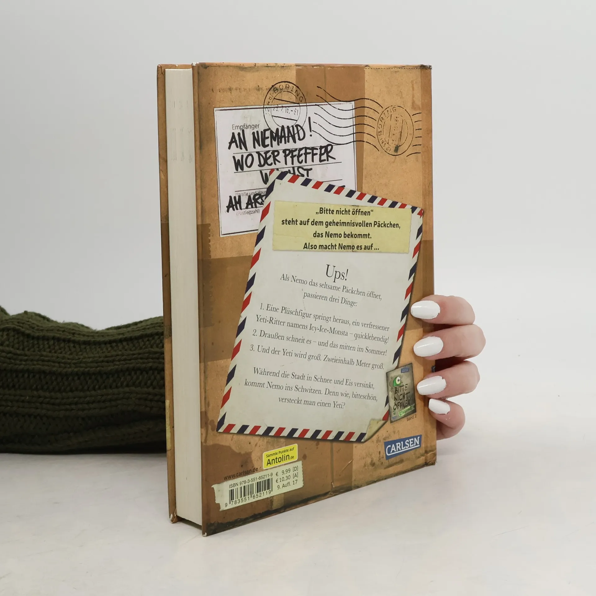 Ding-Dong, die Post ist da!  Nemo schaut nicht schlecht, als er vom Postboten ein Paket mit dem Aufdruck „Bitte nicht öffnen“ entgegennimmt. Die Anschrift ist ebenfalls mysteriös: „An Niemand! Wo der Pfeffer wächst. Am Arsch der Welt“. Was soll das denn? Nemo denkt nicht lange nach, öffnet das Päckchen - und eine lebendige Yeti-Actionfigur springt heraus! Seitdem ist in Nemos Leben nichts mehr normal: Während draußen ein Schneesturm mitten im Sommer tobt, wächst ihm der kleine, plüschige Yeti buchstäblich über den Kopf. Zum Glück kann sich Nemo auf die Hilfe seiner Freunde verlassen. Denn wie, bitteschön, versteckt man einen zweieinhalb Meter großen Yeti? Und vor allem: Wie können sie das Eis-Monster wieder zurück in seine Heimat bringen?  Wenn Spielzeug plötzlich lebendig wird – die Buchreihe „Bitte nicht öffnen“:   Geheimnisvolle Pakete, urkomische Figuren und spannende Abenteuer: Für Fans von mysteriösen Detektivgeschichten und lustiger Fantasy  Yeti, Drache oder Vampir – hinter jedem Band versteckt sich ein anderes Monster  Große Schrift und Schwarz-Weiß-Bilder – ideal für Leseanfänger*innen und Zweitklässler*innen ab 8 Jahren  Ein verlorenes Wesen, das nach Hause will, drei mutige Freunde und viele Überraschungen - für abenteuerlustige Mädchen und Jungen zum Vor- oder Selberlesen.
