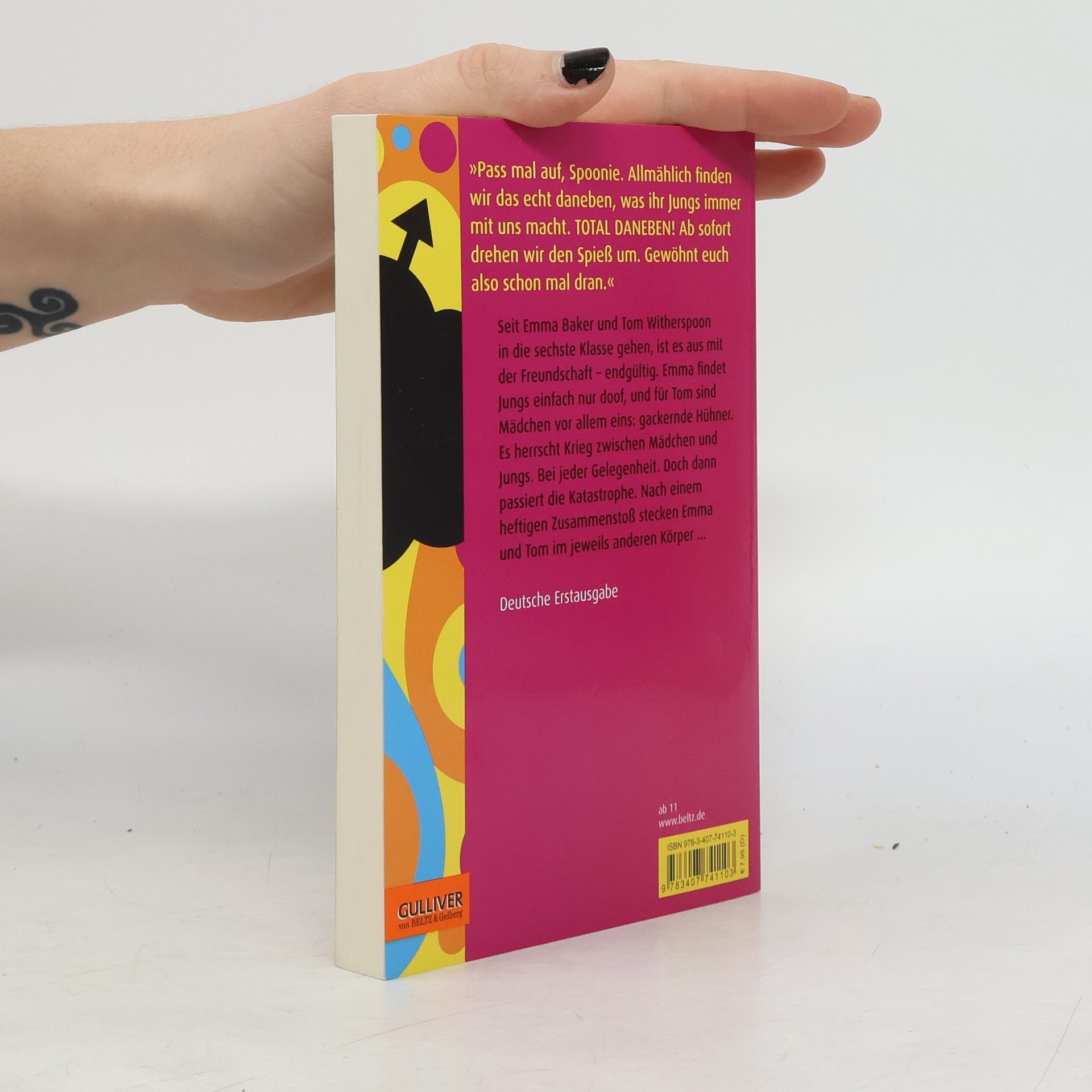 Einmal hin, einmal her – Mädchen oder Junge sein, das ist nicht schwer? Seit Emma und Tom aufs Gymnasium gehen, ist es aus mit der Freundschaft – endgültig. Es wäre nämlich total uncool, wenn Tom mit einem Mädchen ... und Emma mit einem Jungen ... Doch dann steckt Emma auf einmal in Toms Körper und Tom findet sich in Emmas Körper wieder. Ein mehrtägiger Spießrutenlauf beginnt, denn niemand darf was merken, weder Toms alberne Freunde, noch die zickigen Grrzillas, noch die Eltern und Lehrer ... Mit komödiantischer Leichtigkeit spielt der Autor mit Rollenklischees und Vorurteilen. Der Leser schlüpft mal in die eine, mal in die andere Rolle – und amüsiert sich. Bis der Spuk ein Ende hat.