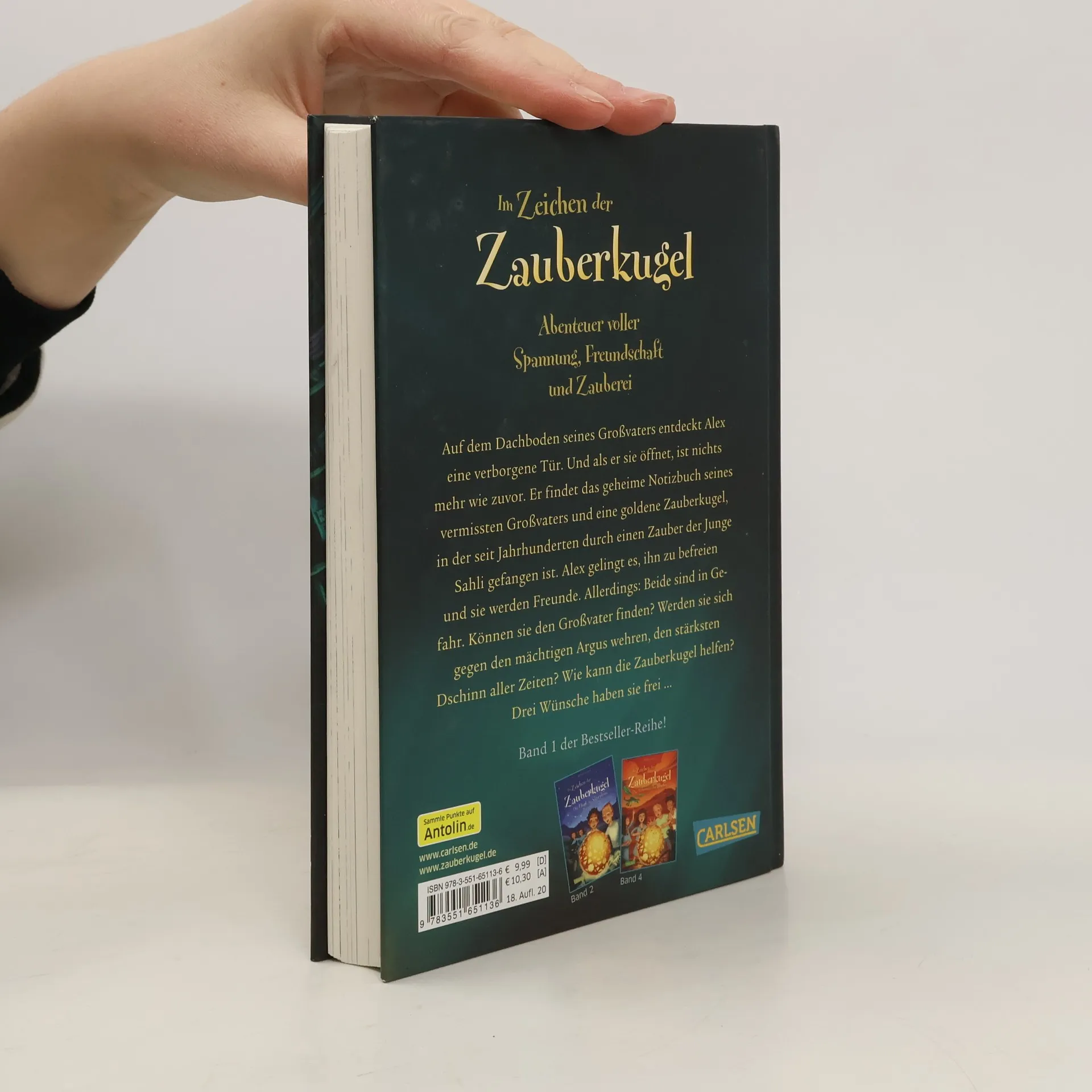 Ein neues Leseabenteuer von Stefan Gemmel, in dem sich alles um die Macht einer Zauberkugel dreht. Beim Stöbern auf dem Dachboden seiner Großeltern entdeckt Alex eine verborgene Tür. Nachdem er sie öffnet, ist nichts mehr wie zuvor. Er findet eine Zauberkugel mit einem Kugelgeist darin und der kennt auch noch Alex’ verschollenen Großvater! Alex kann sein Glück kaum fassen. Doch das ändert sich schnell, denn mit der Befreiung des Kugelgeists Sahli hat er nicht nur drei Wünsche frei, sondern auch dessen mächtigen Schöpfer Argus gegen sich aufgebracht – den stärksten Dschinn aller Zeiten.