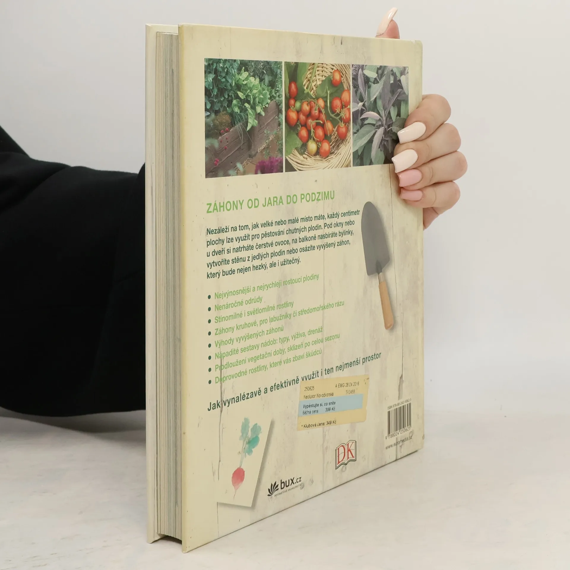 Praktická příručka představuje moderní trend dnešní doby: pěstování na vyvýšených záhonech a v nejrůznějších typech kontejnerů. Názornou formou ukazuje, jak záhon zhotovit, připravit půdu, zalévat a hnojit či jak přilákat užitečný hmyz. Obsahuje podrobné návody, jak postupovat během roku od jara do podzimu, a uvádí rady na nejvhodnější kombinace rostlin. Nechybí ani tipy na netradiční nádoby, drobné kontejnery na balkon či terasu a další nápady, jak sklidit co nejbohatší úrodu. V závěru knihy se nachází přehled jednotlivých rostlin s podrobnými informacemi o pěstování.