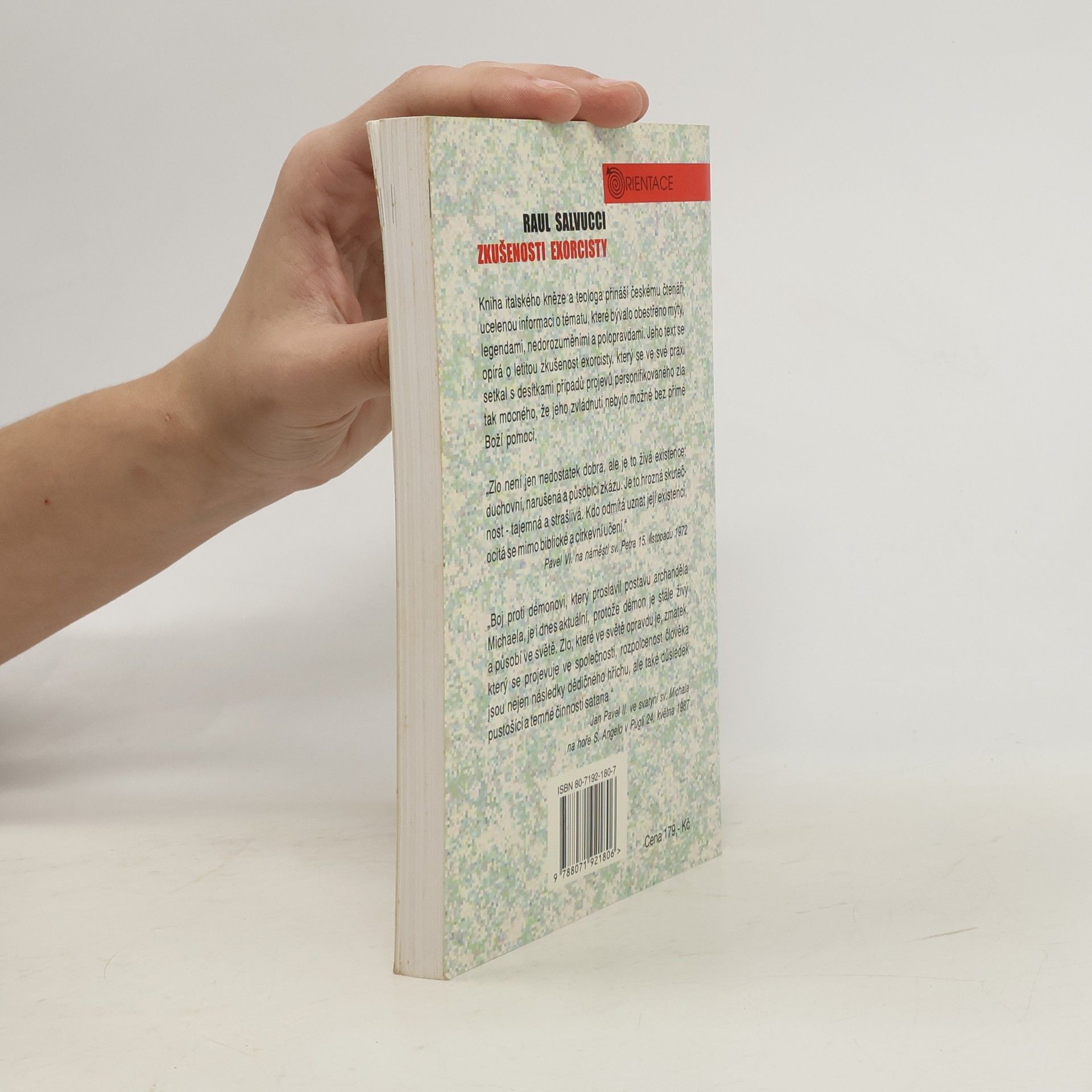 Slyšíme-li slovo exorcismus, vyvolává v nás zvláštní směsici zvědavosti a strachu nebo si vybavujeme útržkovitě informace z filmů. Kniha italského kněze, teologa, ale také exorcisty s více než dvacetiletou praxí, je první ucelenou informací tohoto druhu na našem knižním trhu. Věcným a zároveň poutavým způsobem provádí čtenáře nejen dějinami vztahu personifikovaného zla k člověku, ale především popisuje současnou situaci v církvi i ve světě.