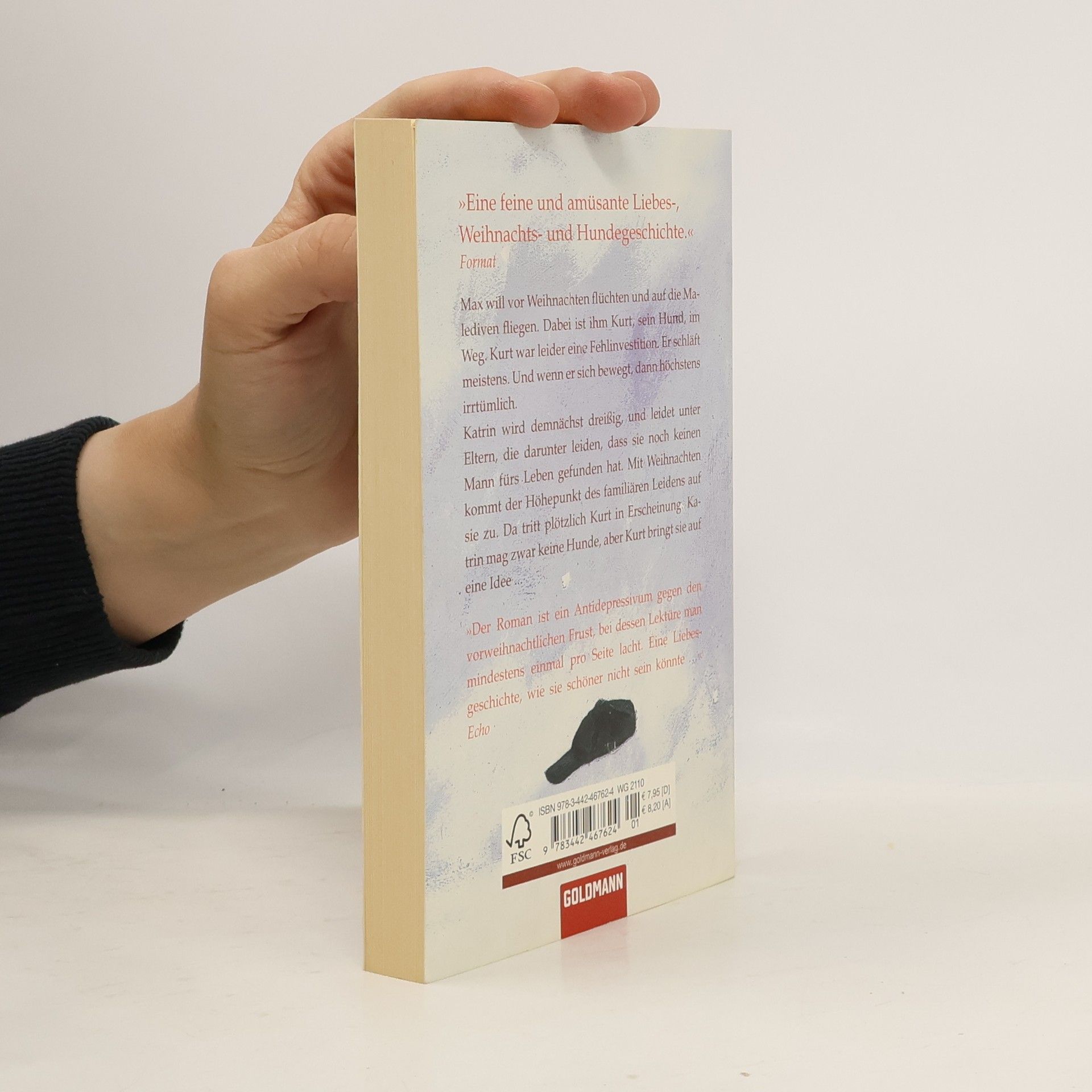 Eine Liebesgeschichte, wie sie schöner nicht sein könnte Max will vor Weihnachten flüchten und auf die Malediven fliegen. Dabei ist ihm Kurt, sein Hund, im Weg. Kurt war leider eine Fehlinvestition. Er schläft meistens. Und wenn er sich bewegt, dann höchstens irrtümlich. Katrin wird demnächst dreißig und leidet unter Eltern, die darunter leiden, dass sie noch keinen Mann fürs Leben gefunden hat. Mit Weihnachten kommt der Höhepunkt des familiären Leidens auf sie zu. Da tritt plötzlich Kurt in Erscheinung. Katrin mag zwar keine Hunde, aber Kurt bringt sie auf eine Idee …