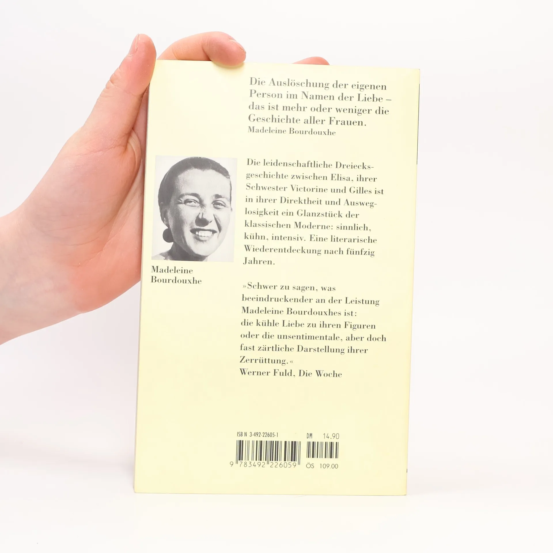 Die Belgierin Madeleine Bourdouxhe (1906-1966) gehörte in den dreißiger Jahren zum literarischen Kreis um Sartre und Simone de Beauvoir. Dieser Roman einer zerstörerischen Leidenschaft, entstand im Jahr 1937. Es handelt sich um eine subtile, ausweglose Dreiecksgeschichte, angesiedelt in Fabrikarbeiterkreisen einer belgischen Industriestadt.