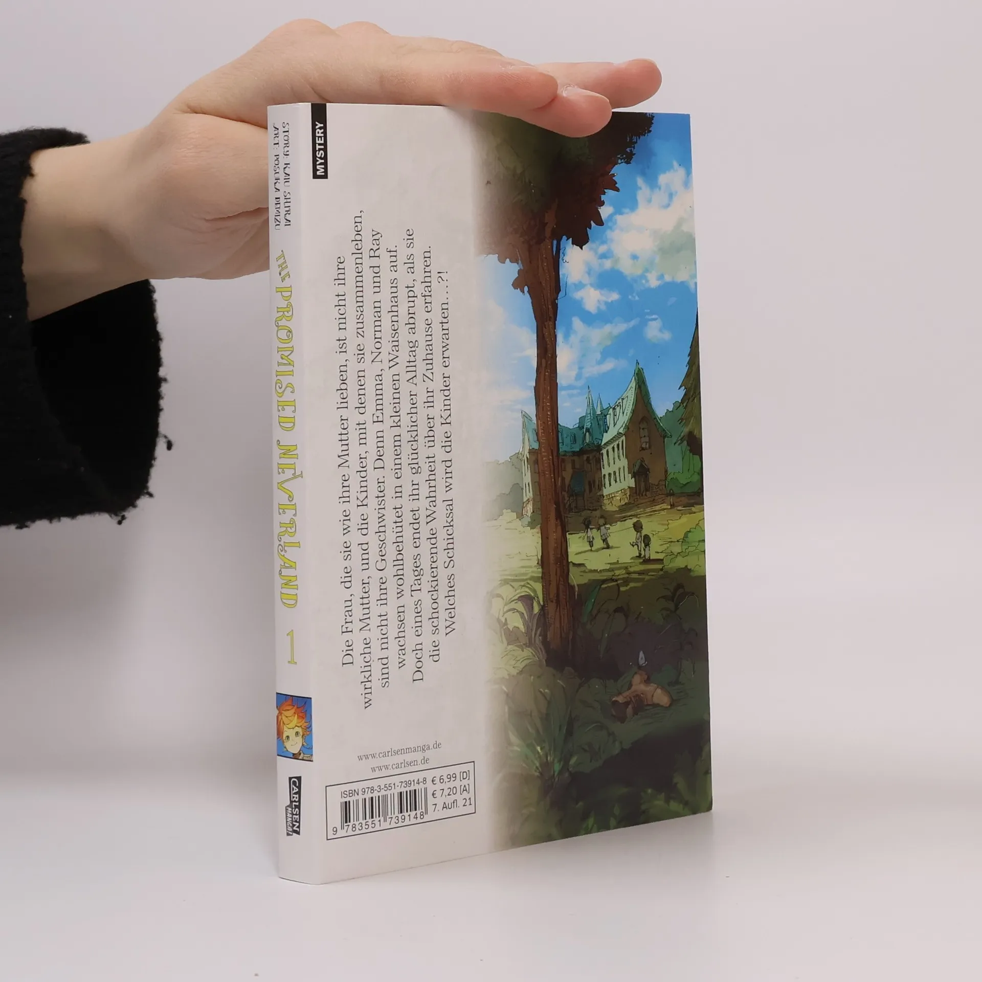 THE PROMISED NEVERLAND ist weltweit einer der erfolgreichsten Manga der letzten Jahre – eine Geschichte voller Lügen, Verrat und Verzweiflung, bei der alles infrage gestellt werden muss. Die Frau, die sie wie ihre Mutter lieben, ist nicht ihre wirkliche Mutter, und die Kinder, mit denen sie zusammenleben, sind nicht ihre Geschwister. Denn Emma, Norman und Ray wachsen wohlbehütet in einem kleinen Waisenhaus auf. Doch eines Tages endet ihr glücklicher Alltag abrupt, als sie die schockierende Wahrheit über ihr Zuhause erfahren. Welches Schicksal wird die Kinder erwarten…?! Unvergleichliche Spannung mit Gänsehaut-Faktor für Jungs, Mädchen und alle Geschlechter! Weitere Infos: - empfohlen ab 15 Jahren- mit 20 Bänden abgeschlossen- Anime-Stream bei Wakanim und Animax Plus- Anime-DVD/Blu-ray von Peppermint Anime- Kinofilm ab Dezember 2020 in Japan- Live-Action-Serie von Amazon geplant