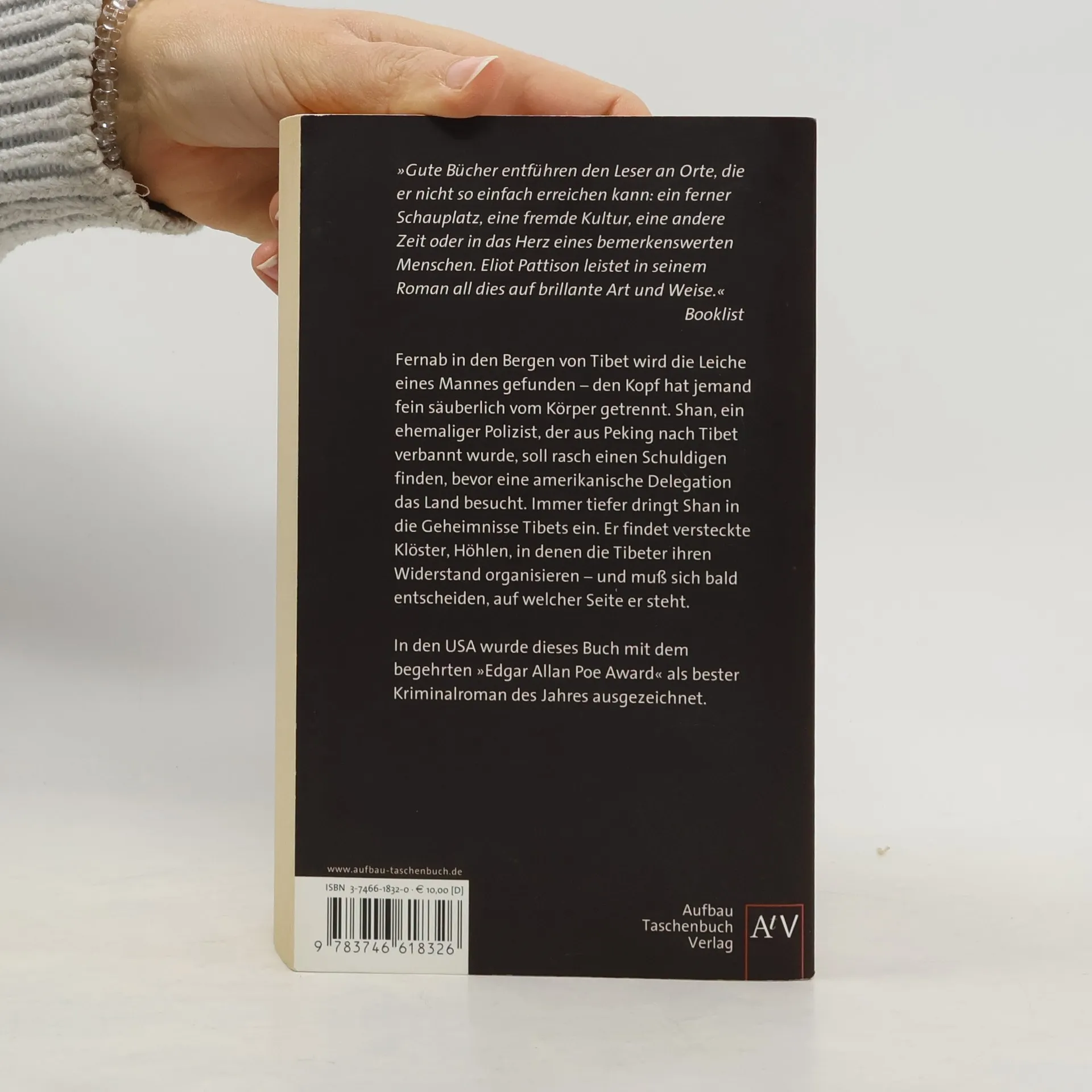 „Gute Bücher entführen den Leser an Orte, die er nicht so einfach erreichen kann: ein ferner Schauplatz, eine fremde Kultur, eine andere Zeit oder in das Herz eines bemerkenswerten Menschen. Eliot Pattison leistet in seinem Roman all dies auf brillante Art und Weise.“ Booklist Fernab in den Bergen von Tibet wird die Leiche eines Mannes gefunden - den Kopf hat jemand fein säuberlich vom Körper getrennt. Shan, ein ehemaliger Polizist, der aus Peking nach Tibet verbannt wurde, soll rasch einen Schuldigen finden, bevor eine amerikanische Delegation das Land besucht. Immer tiefer dringt Shan in die Geheimnisse Tibets ein. Er findet versteckte Klöster, Höhlen, in denen die Tibeter ihren Widerstand organisieren - und muss sich bald entscheiden, auf welcher Seite er steht. In den USA wurde dieses Buch mit dem begehrten „Edgar Allan Poe Award“ als bester Kriminalroman des Jahres ausgezeichnet.