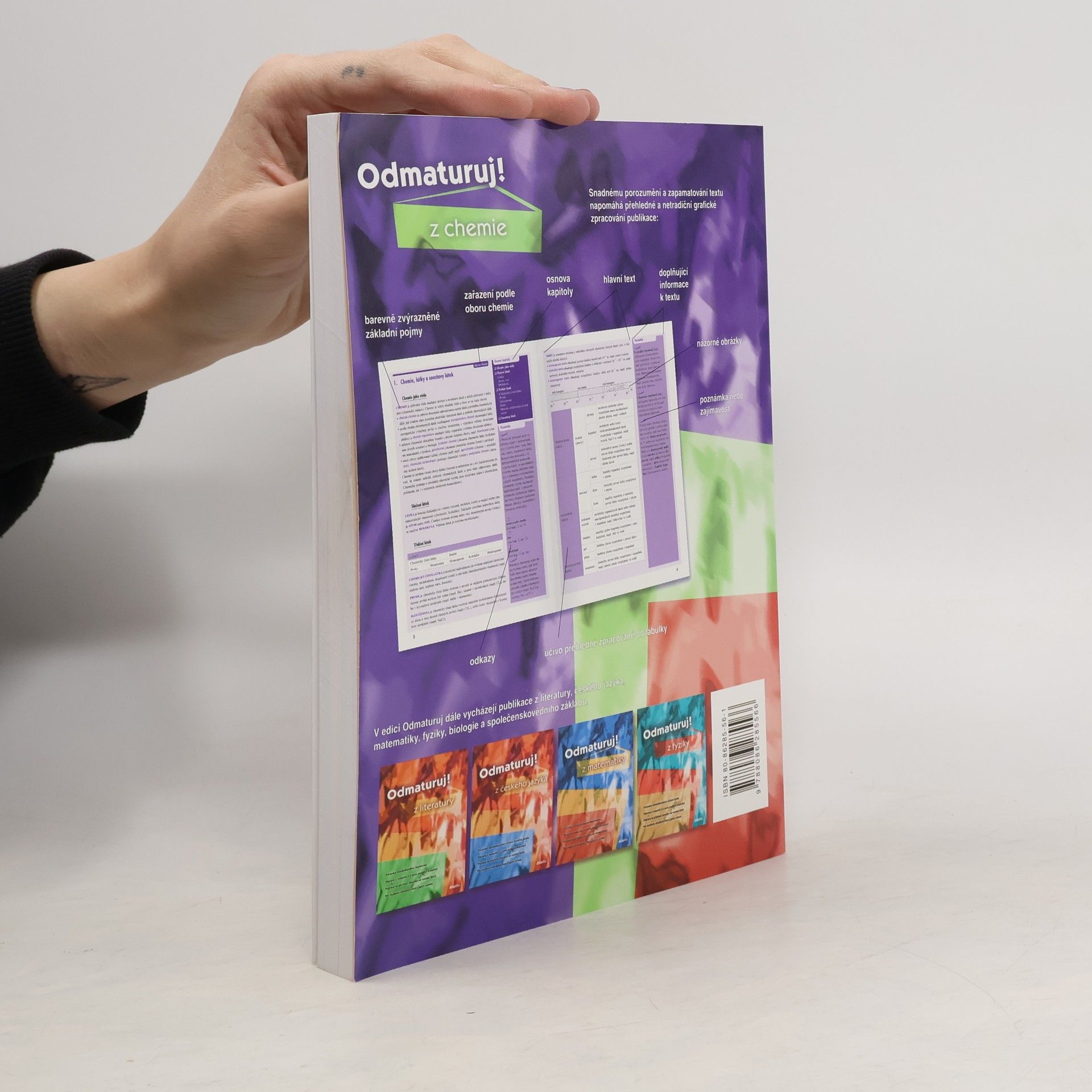 •Poutavá učebnice určená k přípravě na maturitu (i k nové podobě maturity) a k přijímacím zkouškám na vysoké školy. •Obsahuje celou středoškolskou látku chemie, poznatky z obecné chemie, anorganické a organické chemie a biochemie. •Kniha je přehledně zpracována do 38 kapitol, které jsou dále členěny na menší podkapitoly, příp. i menší tematické celky. •Snadnou orientaci v textu podporuje grafické odlišení ústředního textu od doplňujících poznámek a zajímavostí a barevné zvýraznění základních pojmů. •Text je doplněn mnoha přehlednými tabulkami a názornými schématy. •Určeno studentům všech středních škol během celého středoškolského studia, jejich učitelům a ostatním zájemcům o studium chemie.... celý text