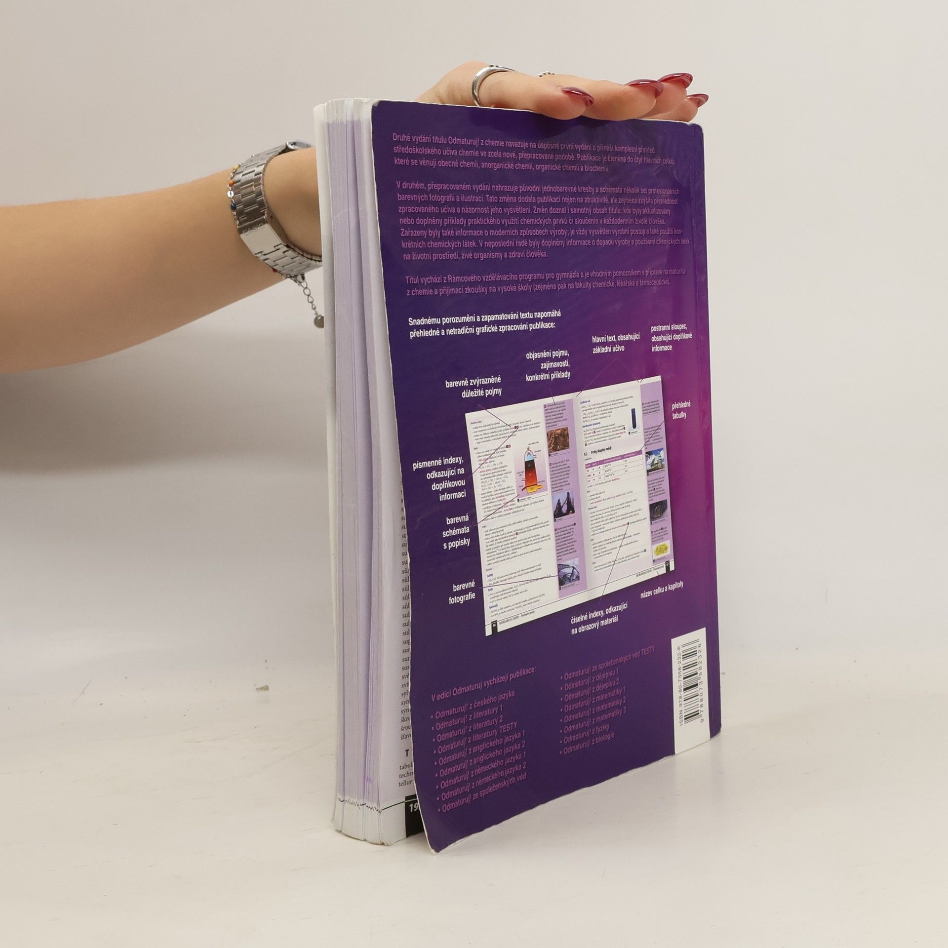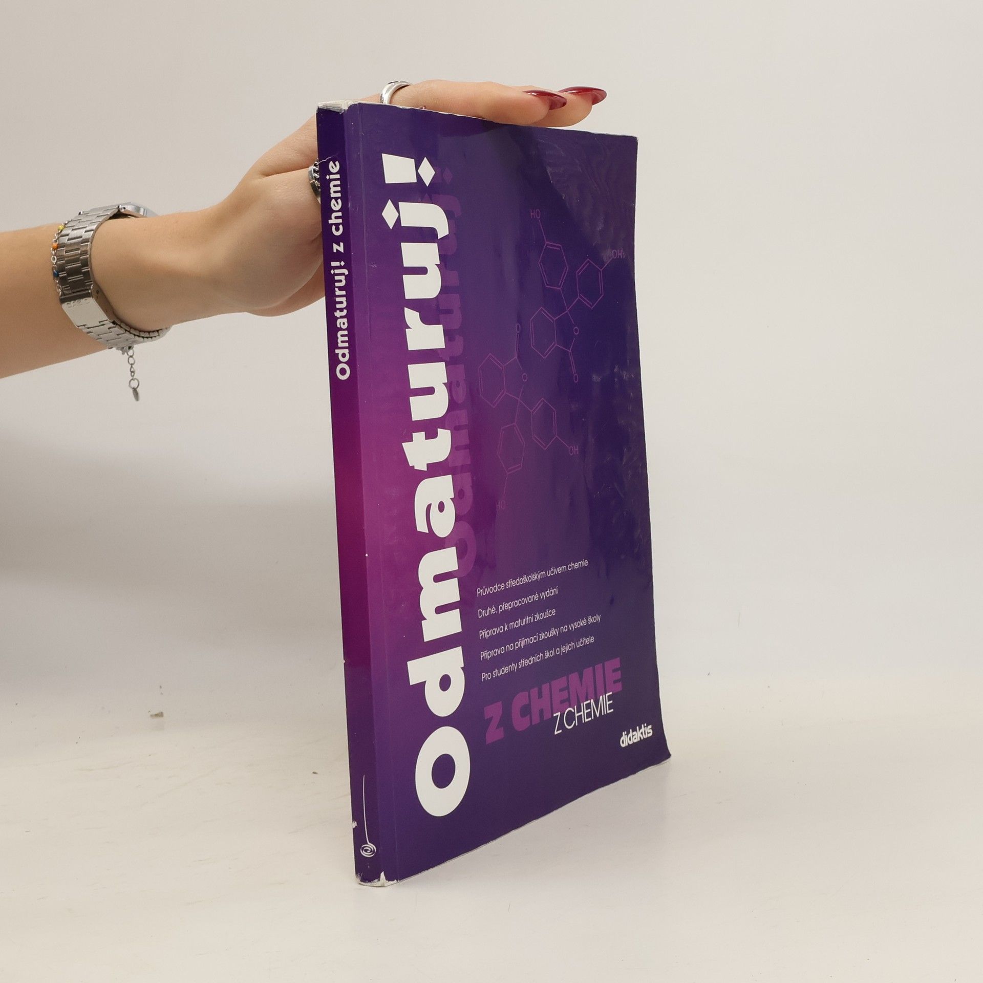 •Poutavá učebnice určená k přípravě na maturitu (i k nové podobě maturity) a k přijímacím zkouškám na vysoké školy. •Obsahuje celou středoškolskou látku chemie, poznatky z obecné chemie, anorganické a organické chemie a biochemie. •Kniha je přehledně zpracována do 38 kapitol, které jsou dále členěny na menší podkapitoly, příp. i menší tematické celky. •Snadnou orientaci v textu podporuje grafické odlišení ústředního textu od doplňujících poznámek a zajímavostí a barevné zvýraznění základních pojmů. •Text je doplněn mnoha přehlednými tabulkami a názornými schématy. •Určeno studentům všech středních škol během celého středoškolského studia, jejich učitelům a ostatním zájemcům o studium chemie.