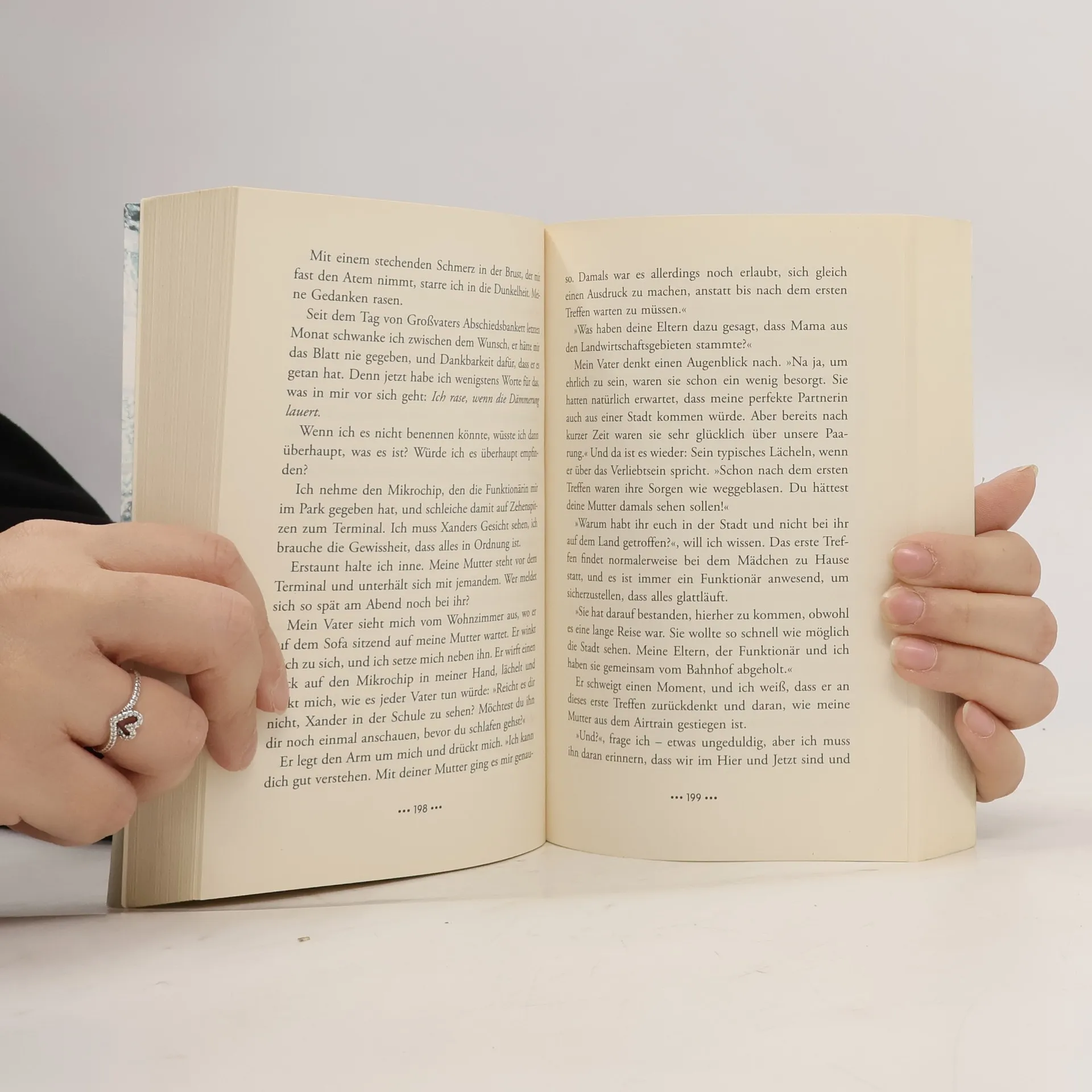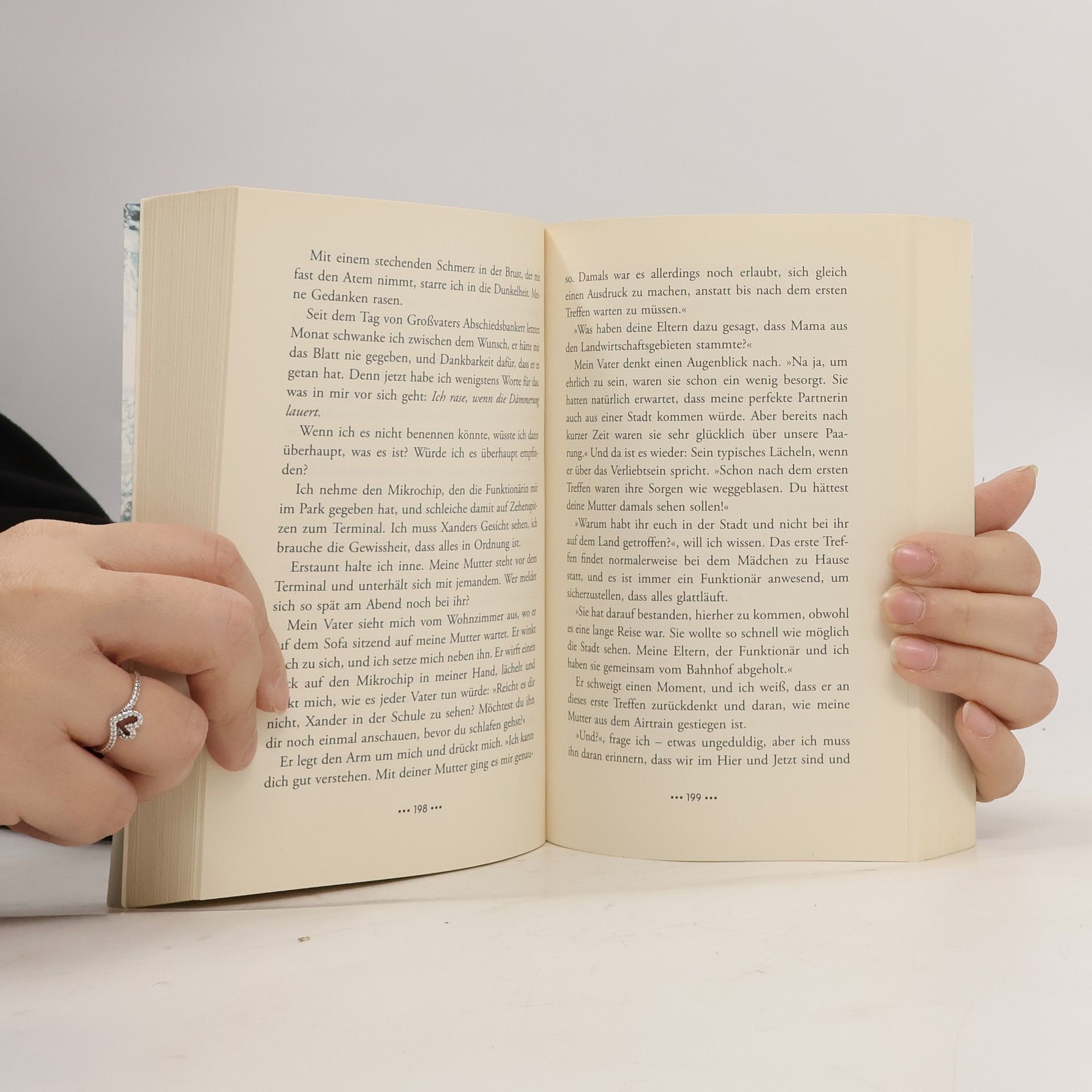 Das System sagt, wen du lieben sollst – aber was sagt dein Herz? Für die 17-jährige Cassia ist es der wichtigste Tag ihres Lebens: Heute erfährt sie, wen sie mit 21 heiraten wird – wen das System für sie ausgewählt hat. Es könnte jeder Junge aus Oria sein, doch zur großen Überraschung aller wird ihr bester Freund Xander als ihr Partner bekanntgegeben. Als Cassia sich später auf dem feierlich überreichten Mikrochip Informationen über Xander ansehen will, passiert etwas schier Unmögliches: Es erscheint das Gesicht eines anderen Jungen – das von Ky. Cassia ist schockiert und verängstigt. Das System macht keine Fehler! Und tatsächlich wird ihr von offizieller Seite versichert, dass es sich um ein einmaliges Versehen handelt. Aber Cassia geht Kys Anblick nicht mehr aus dem Kopf. Gibt es doch die Möglichkeit zu wählen?