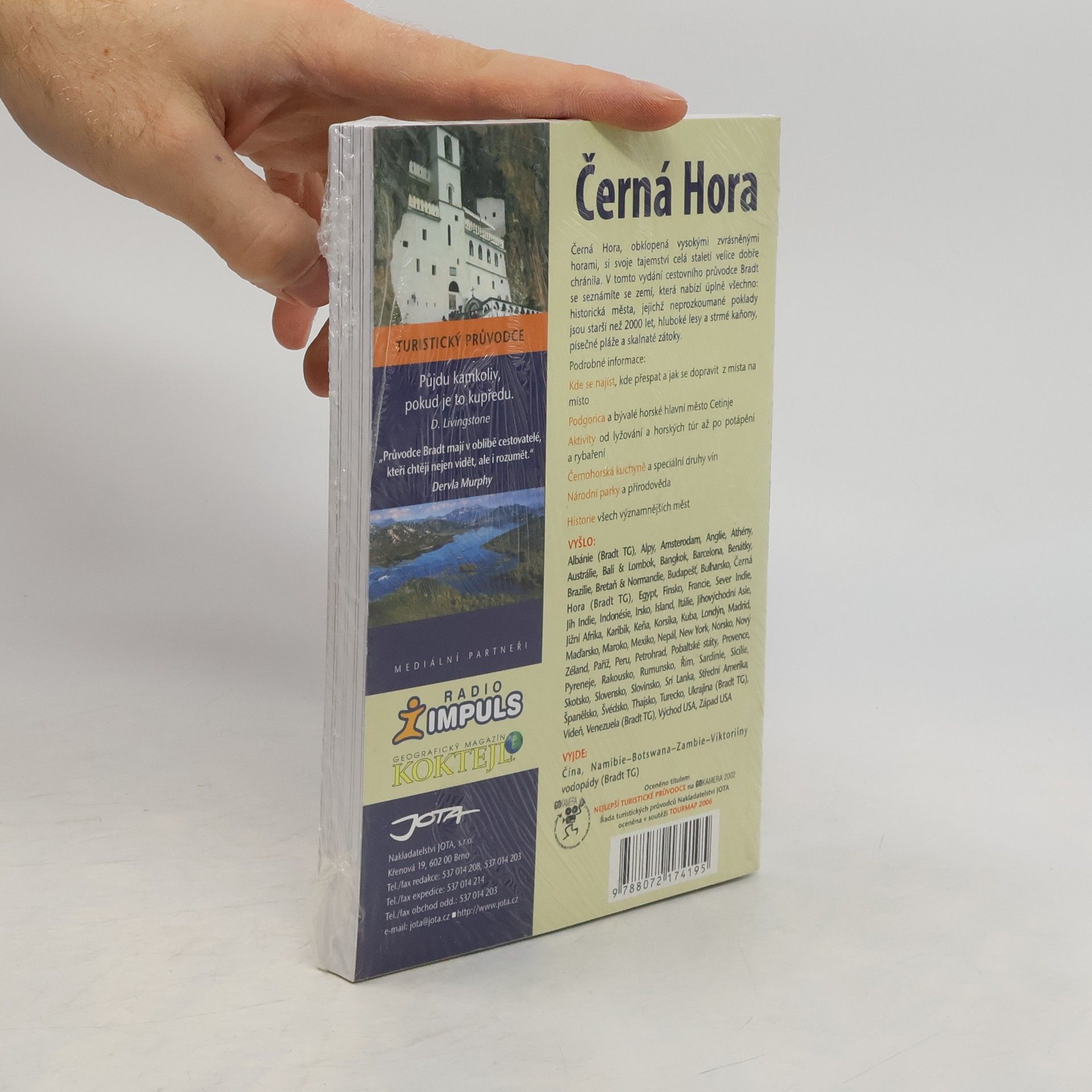 Černá Hora - turistický průvodce / Annalisa Rellieová; s fotografiemi Michaela Pokorného a Marka Audyho. Obklopená vysokými, zvrásněnými horami, Černá Hora, si svoje tajemství celá staletí velice dobře chránila. Autorka cestovního průvodce po Černé Hoře vypráví o této málo známé zemi, která, jak se aspoň zdá, nabízí úplně všechno: historická města, jejichž neprozkoumané poklady jsou starší než 2000 let, hluboké lesnaté hory a strmé kaňony, písečné pláže a skalnaté zátoky. Jeďte hned, než se to tajemství prozradí. Kde se najíst, kde přespat, a jak se dopravovat z místa na místo Podgorica a bývalé horské hlavní město Cetinje. Aktivity, od lyžování a horských túr až po potápění a rybaření. Černohorská kuchyně a speciální druhy vín. Národní parky a přírodověda. Historie všech významnějších měst. Vydání 1.
