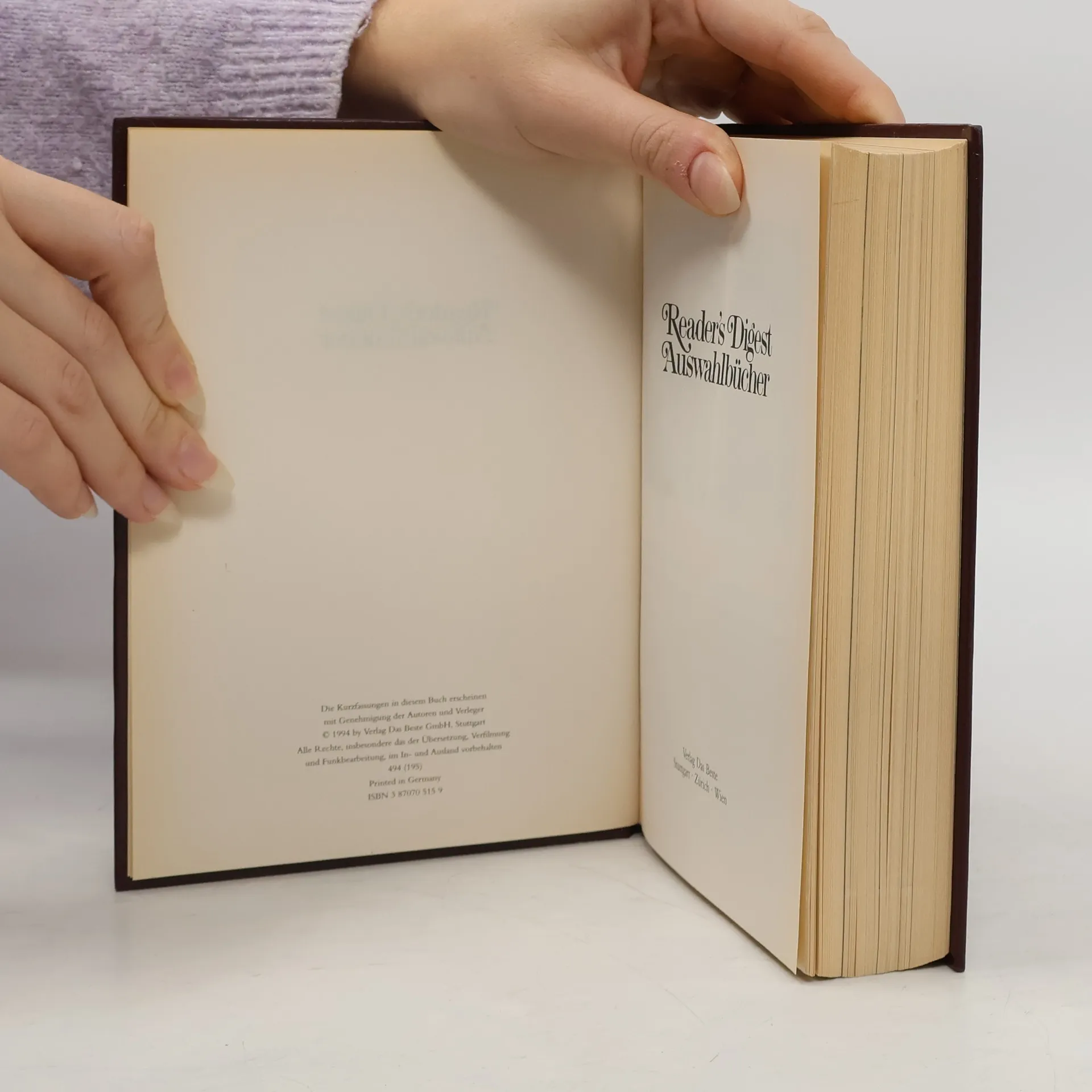 There are currently of book Reader's Digest Auswahlbücher: Ein jegliches nach seiner Art, Schwesterlein komm tanz mit mir, Die seidenweberin, Der Preis des Rechts (1994) in stock.