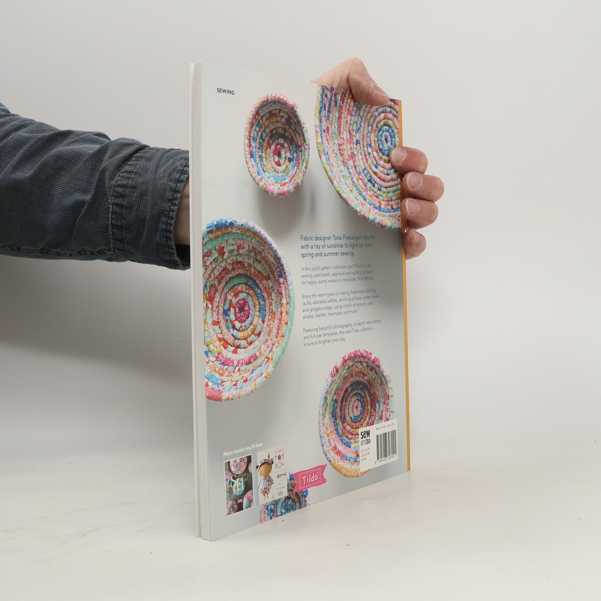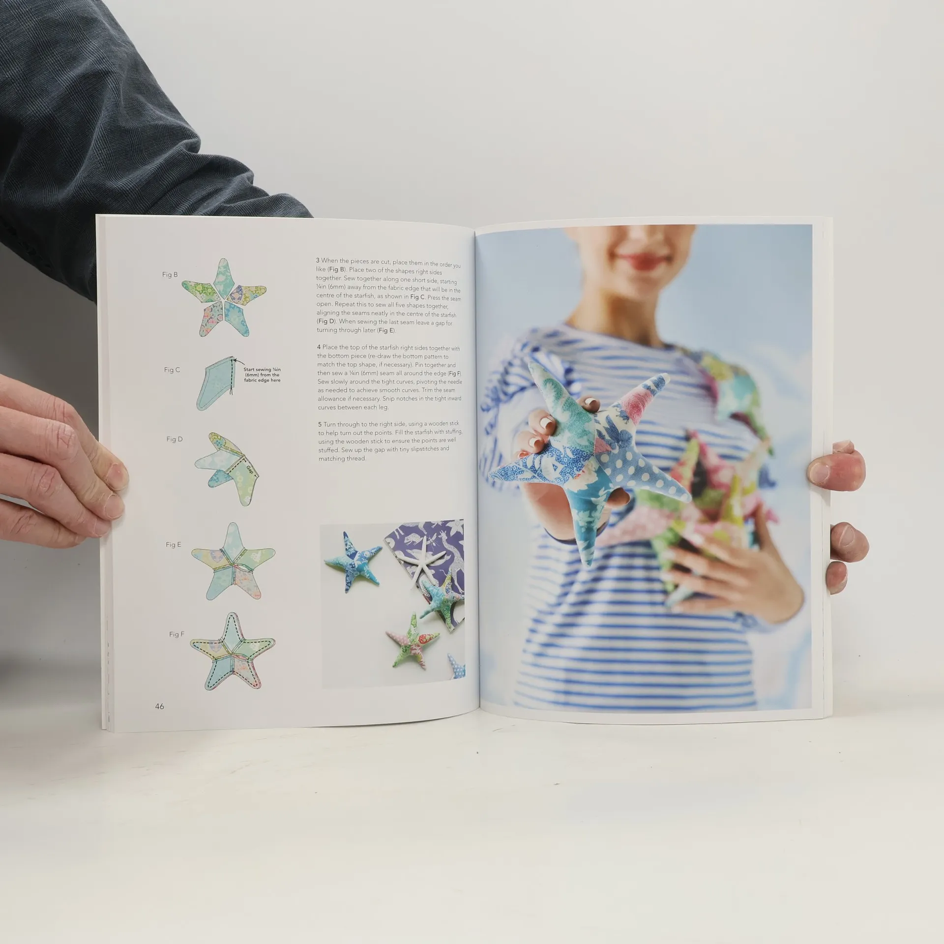 12 projects are themed around coast and countryside, with motifs of lemons, trees, birds, octopuses, mermaids, jellyfish, whales and starfish, including two quilts, pillows, soft toys and fabric bowls