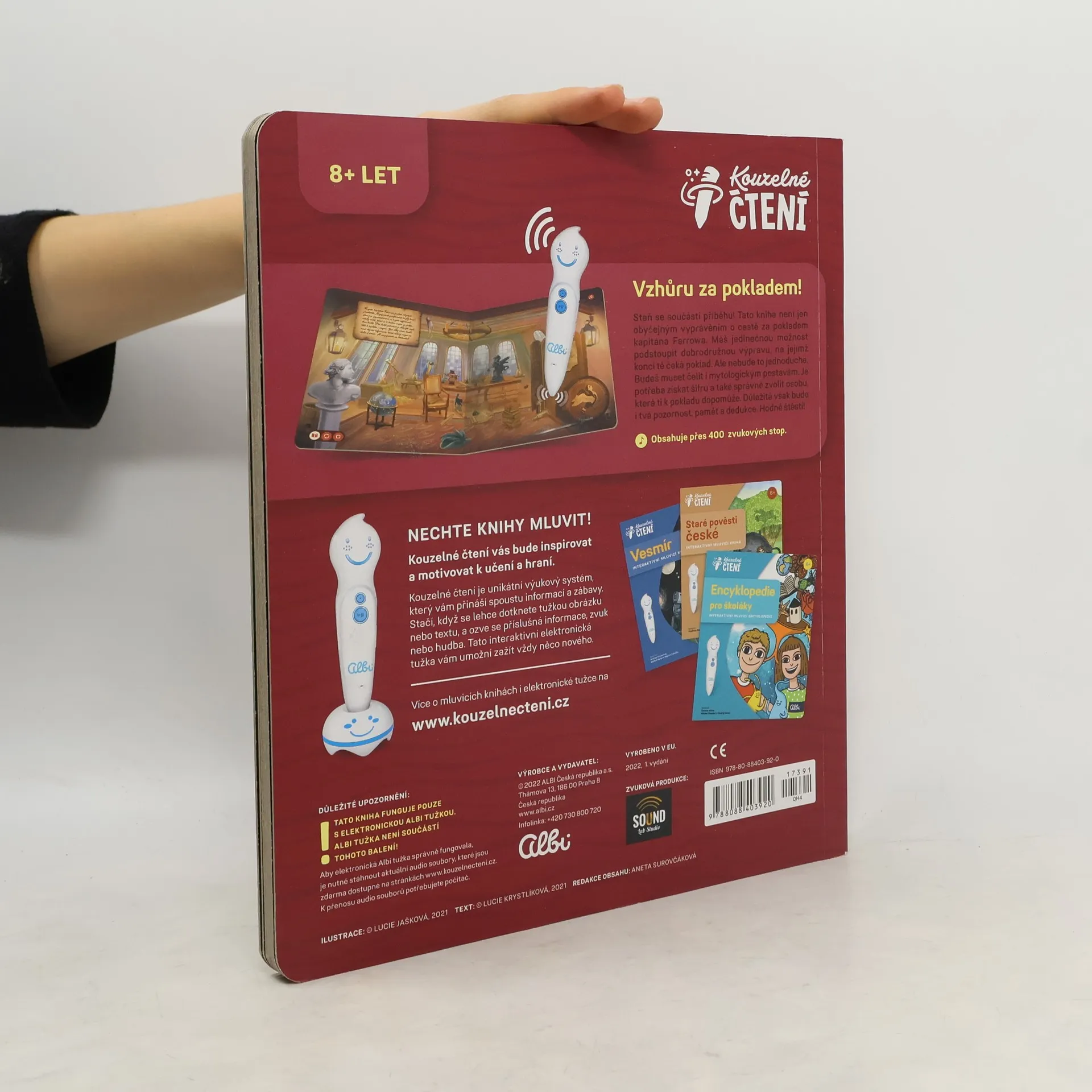 Tato kniha funguje pouze s elektronickou Albi tužkou. Albi tužka není součástí tohoto balení! Staň se součástí příběhu! Tato kniha není jen obyčejným vyprávěním o cestě za pokladem kapitána Farrowa. Máš jedinečnou možnost podstoupit dobrodružnou výpravu, na jejímž konci tě čeká poklad. Ale nebude to jednoduché. Budeš muset čelit i mytologickým postavám. Je potřeba získat šifru a také správně zvolit osobu, která ti k pokladu dopomůže. Důležitá však bude i tvá pozornost, paměť a dedukce. Hodně štěstí!
