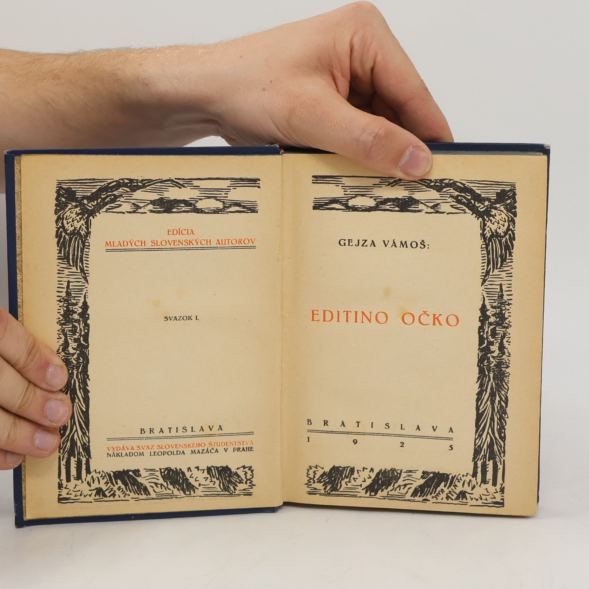 Obsahuje dve novely Editino očko a Jazdeckú legendu a poviedku Jesť. Vámoš v r. 1925 debutoval knižne zbierkou noviel Editino očko. Vyšla ako prvý zväzok novozaloženej Edície mladých slovenských autorov. Zaradil do nej príspevky publikované v časopise Svojeť a Mladé Slovensko. Novely sú výrazom autorovho pesimistického názoru na skutočnosť a skeptického vzťahu k človeku, ale aj naliehavej potreby varovať ho, usmerňovať a prevychovávať. Ako lekár uplatňoval v pohľade na človeka výrazné biologické hľadiská. Skúmal ho cez základné fyziologické funkcie a snažil sa postihnúť určujúce motivácie jeho správania sa a činov. Objavil uňho celý rad negatívnych vlastností, ako je egoizmus, pýcha, krutosť a i. Pesimisticko-skeptický svetonázor neviedol však Vámoša iba k defetizmu: ustavične osciloval medzi rezignáciou a vzburou. Z daného stavu videl iba jediné východisko - lásku k blížnemu. (Encyklopédia slovenských spisovateľov. Obzor : Bratislava, 1984)